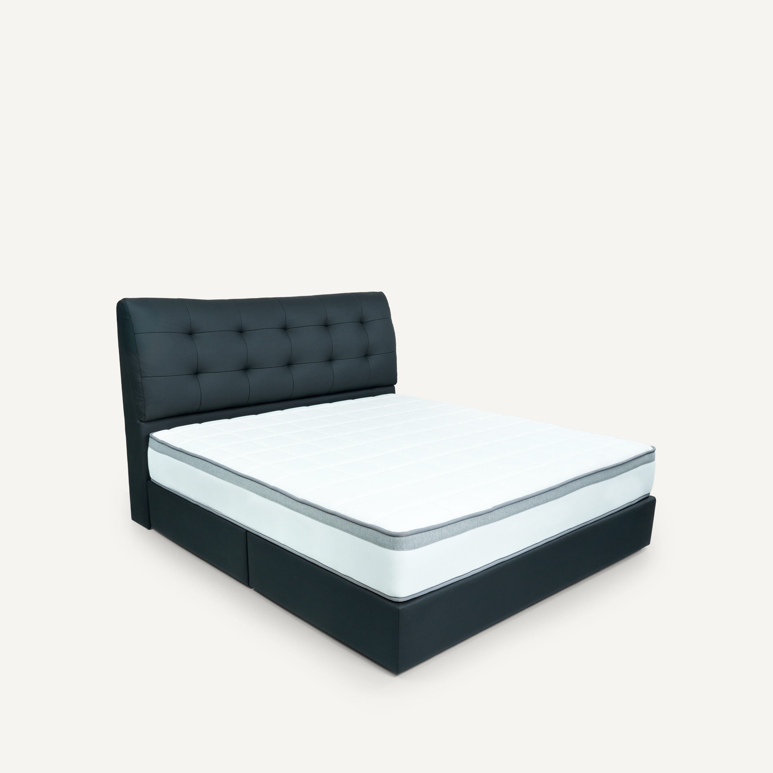 A premium bed frame that combines bold, architectural presence with classic tailored details. Featuring a tall, deep-buttoned tufted headboard and a substantial upholstered base, Arnold serves as a powerful centerpiece for a modern master bedroom, offering a blend of sophisticated luxury and lasting durability.