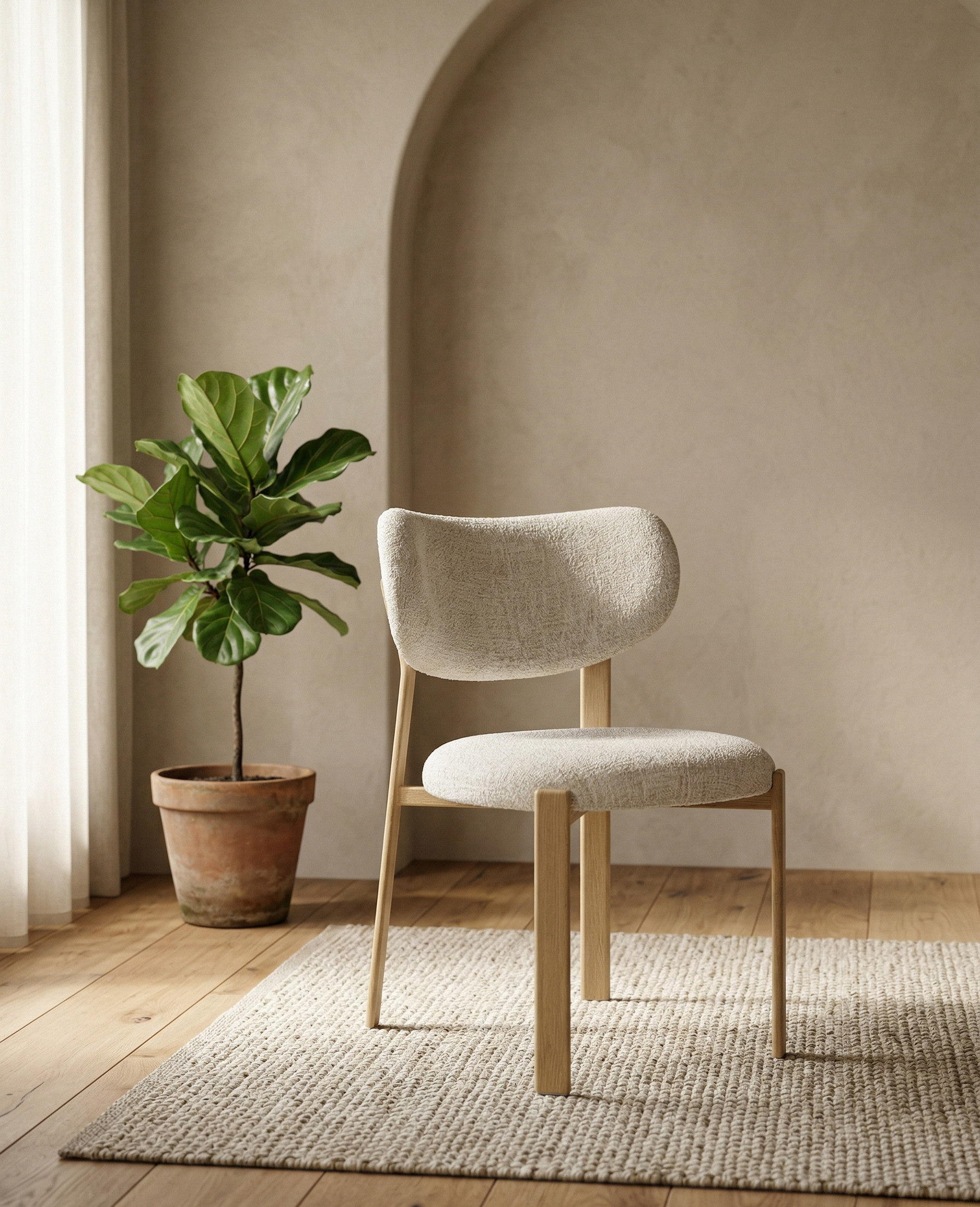 A sculptural dining chair that celebrates organic curves and architectural structure. Featuring a distinctive wide-set “petal” backrest and a solid wood frame with clean, geometric lines, Bensi offers an airy yet grounded silhouette.