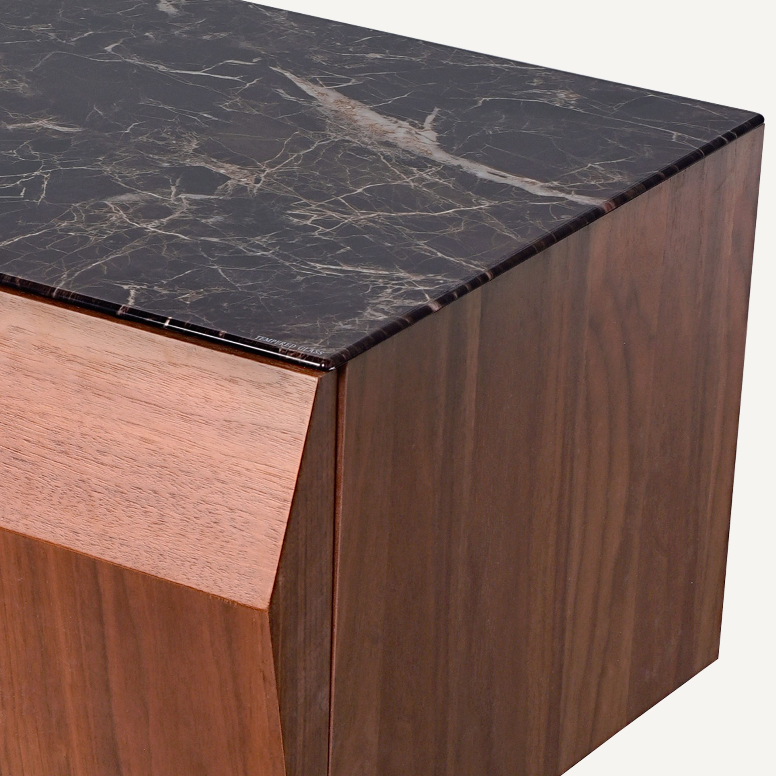 Material: Walnut veneer, tempered glass
