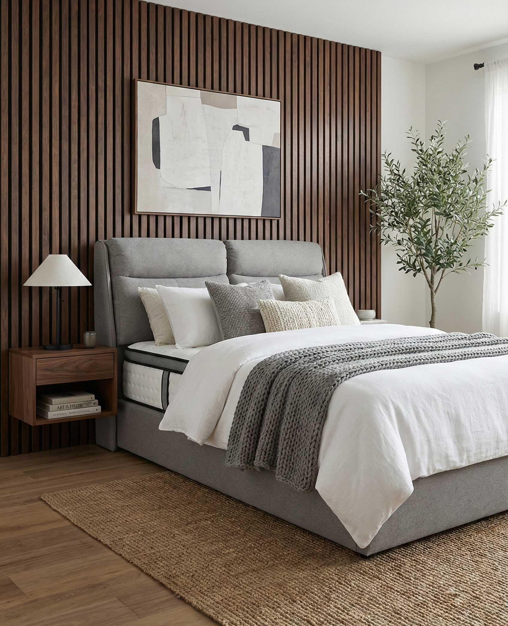 The Mado bed offers a sophisticated blend of contemporary design and inviting warmth, poised to be the elegant focal point of your bedroom. It features a striking oversized headboard with a unique vertical panel design and gently flared wingback sides, creating a refined silhouette that exudes both comfort and grandeur. Built for practical, healthy living, the entire bed is meticulously wrapped in premium, soft-touch fabric that is both OEKO-TEX® Certified, free from harmful chemicals and water-repellant performance treated for easy spill cleanup. Completed with a sturdy, fully upholstered platform base, the Mado bed ensures maximum mattress support while adding an air of understated luxury and peace of mind to your space.