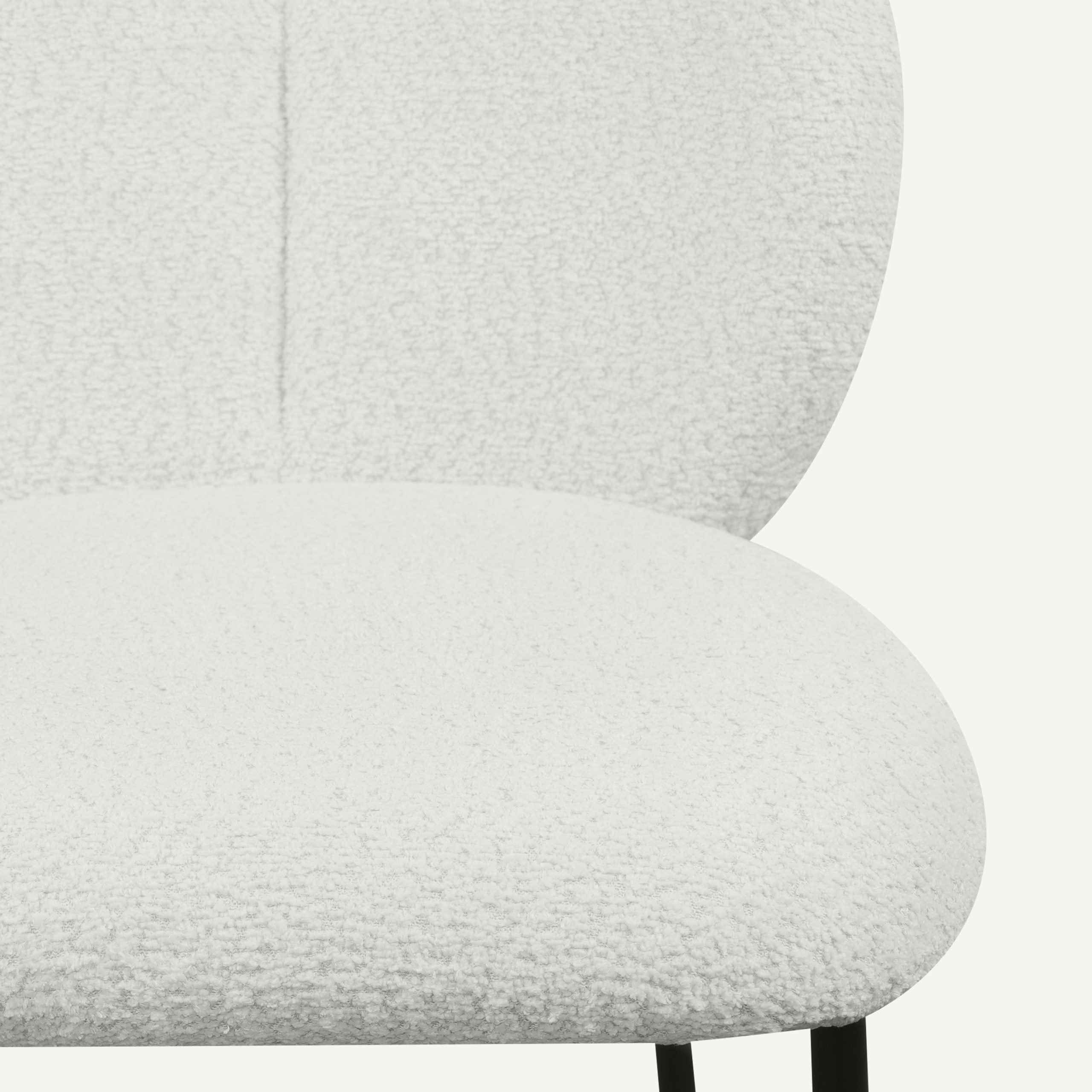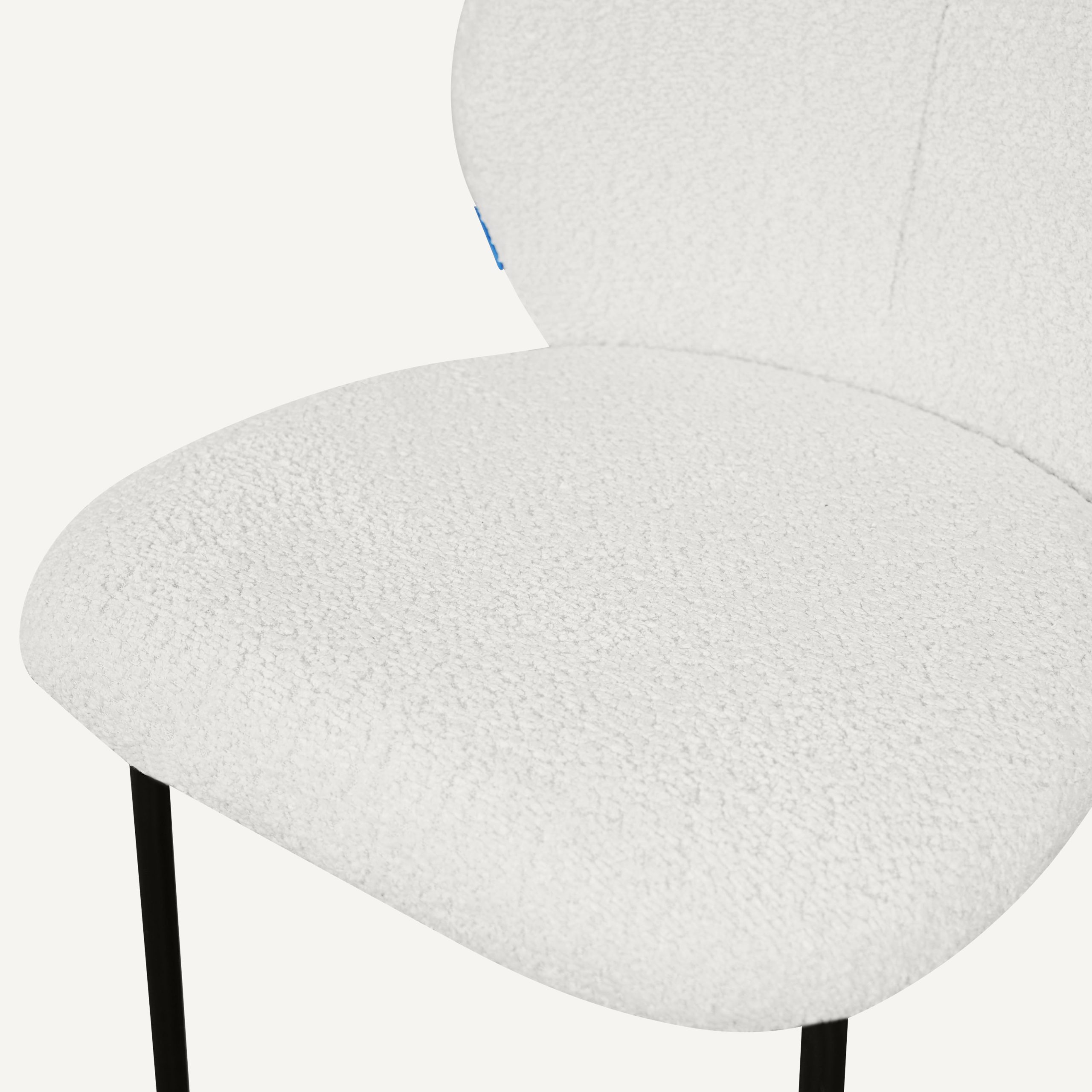 The Chepi chair featuring Oeko-Tex® certified upholstery for safe, comfortable everyday use, paired with durable epoxy-coated steel legs for strength and stability.