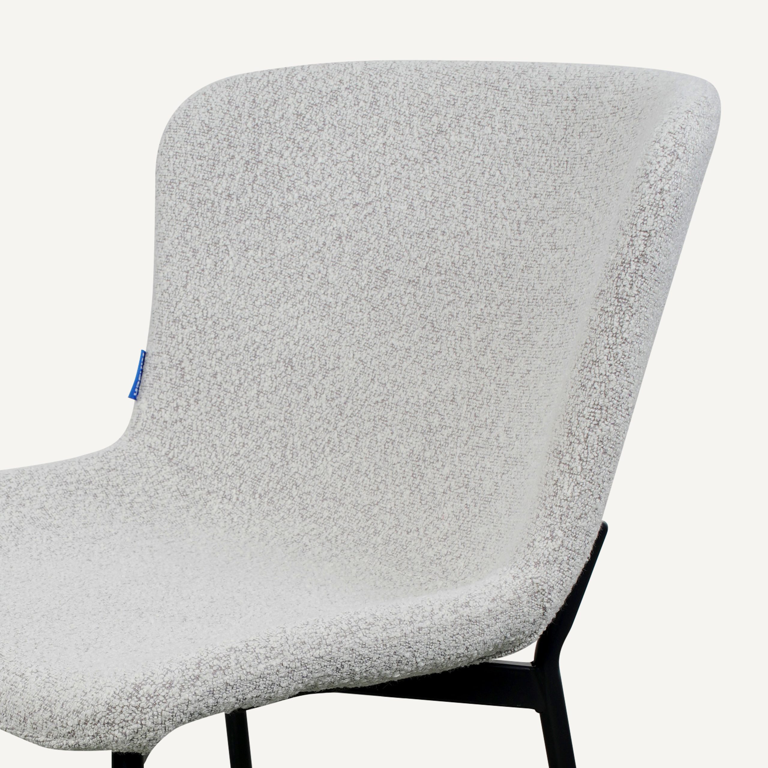 The Chriss chair featuring Oeko-Tex® certified upholstery for safe, comfortable everyday use, paired with durable epoxy-coated steel legs for strength and stability.