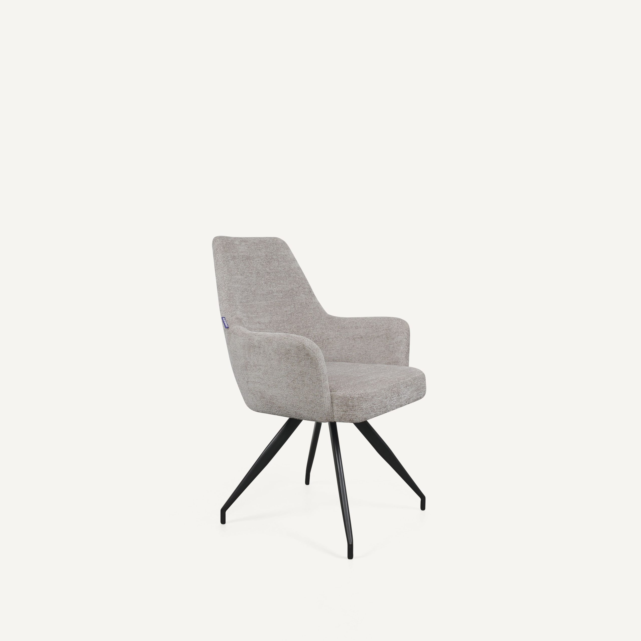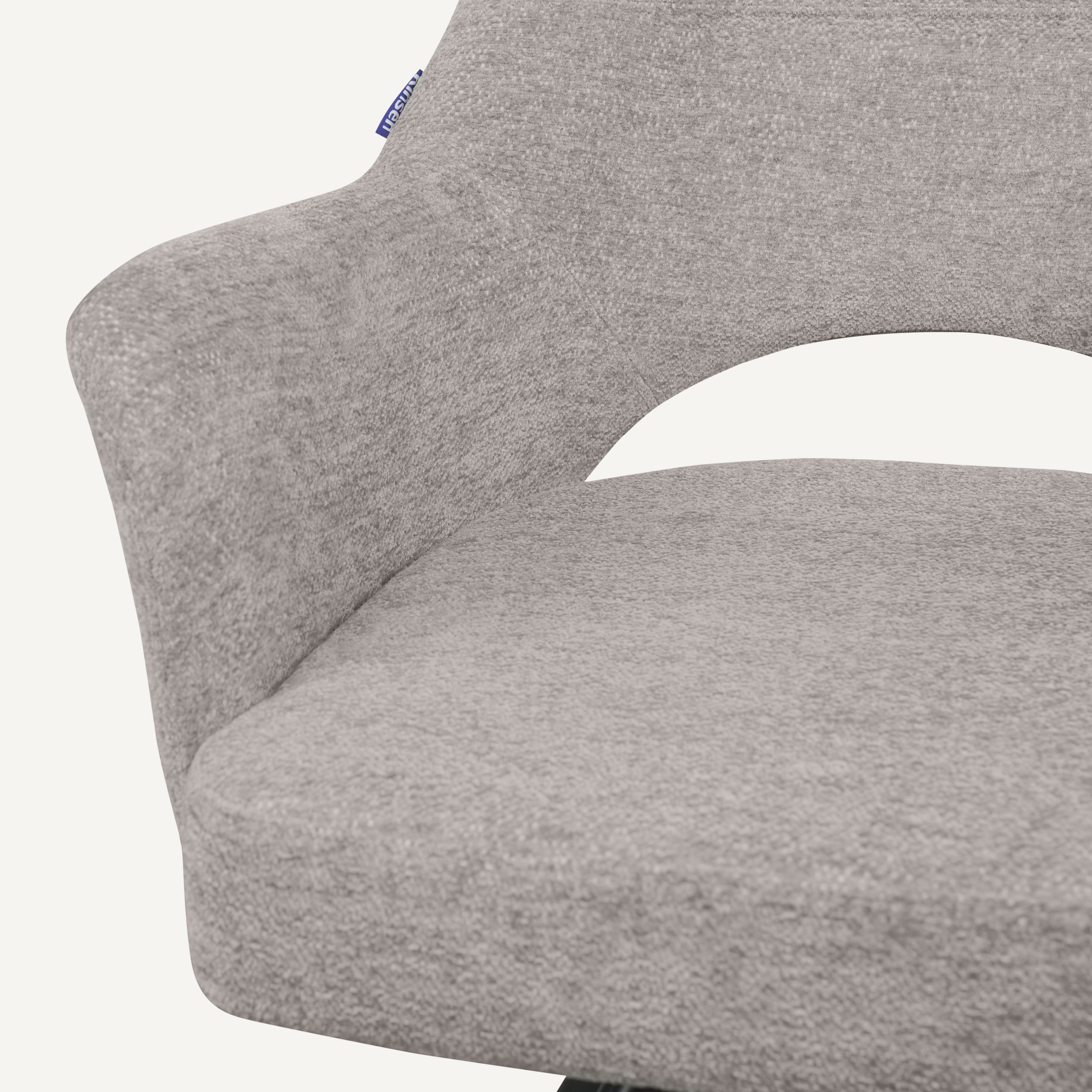 The Ellse chair featuring Oeko-Tex® certified upholstery for safe, comfortable everyday use, paired with durable epoxy-coated steel legs for strength and stability.