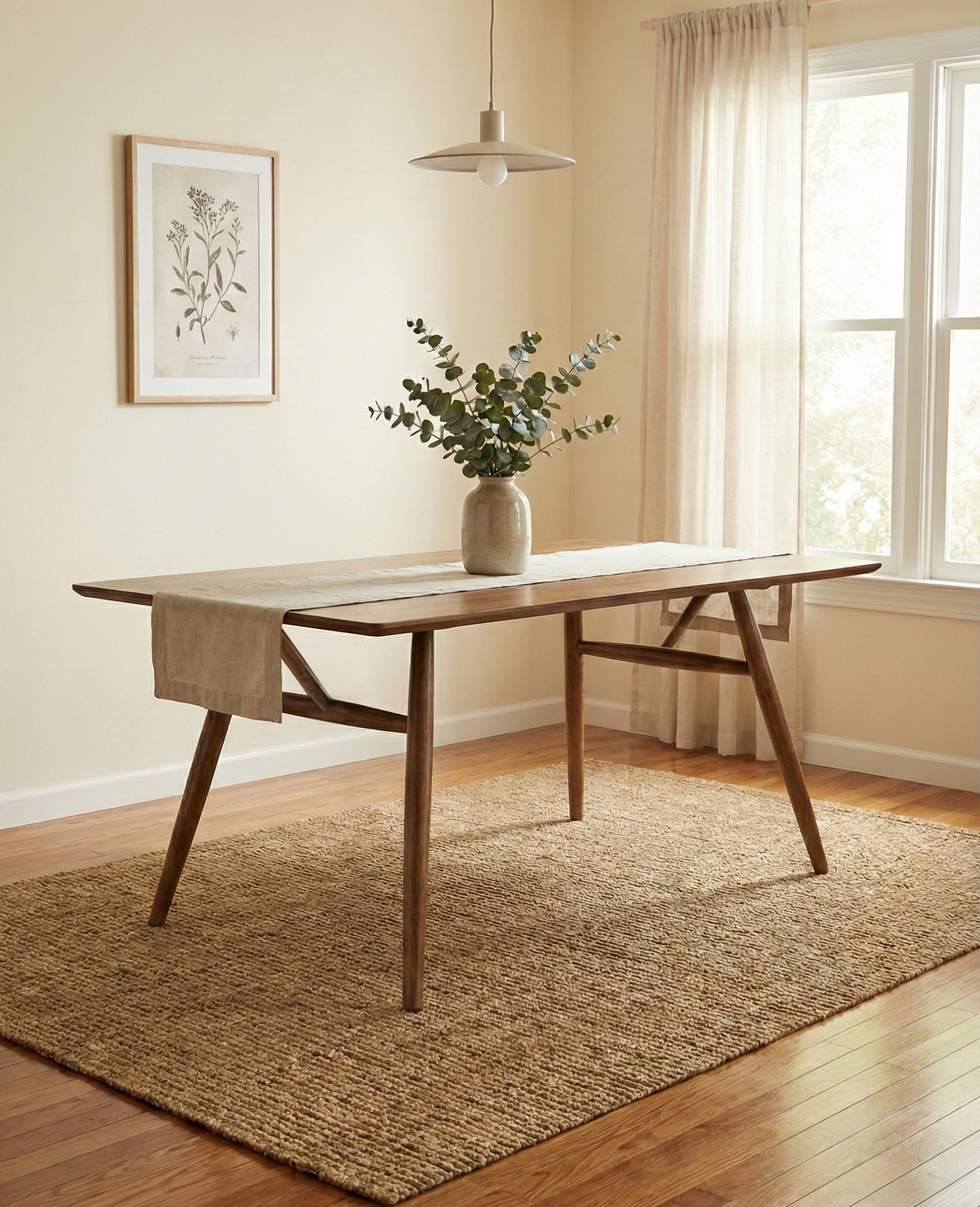 - A rectangular table featuring gently rounded corners, which reduce the risk of injury from bumping into sharp edges, especially in homes with children or elderly people.