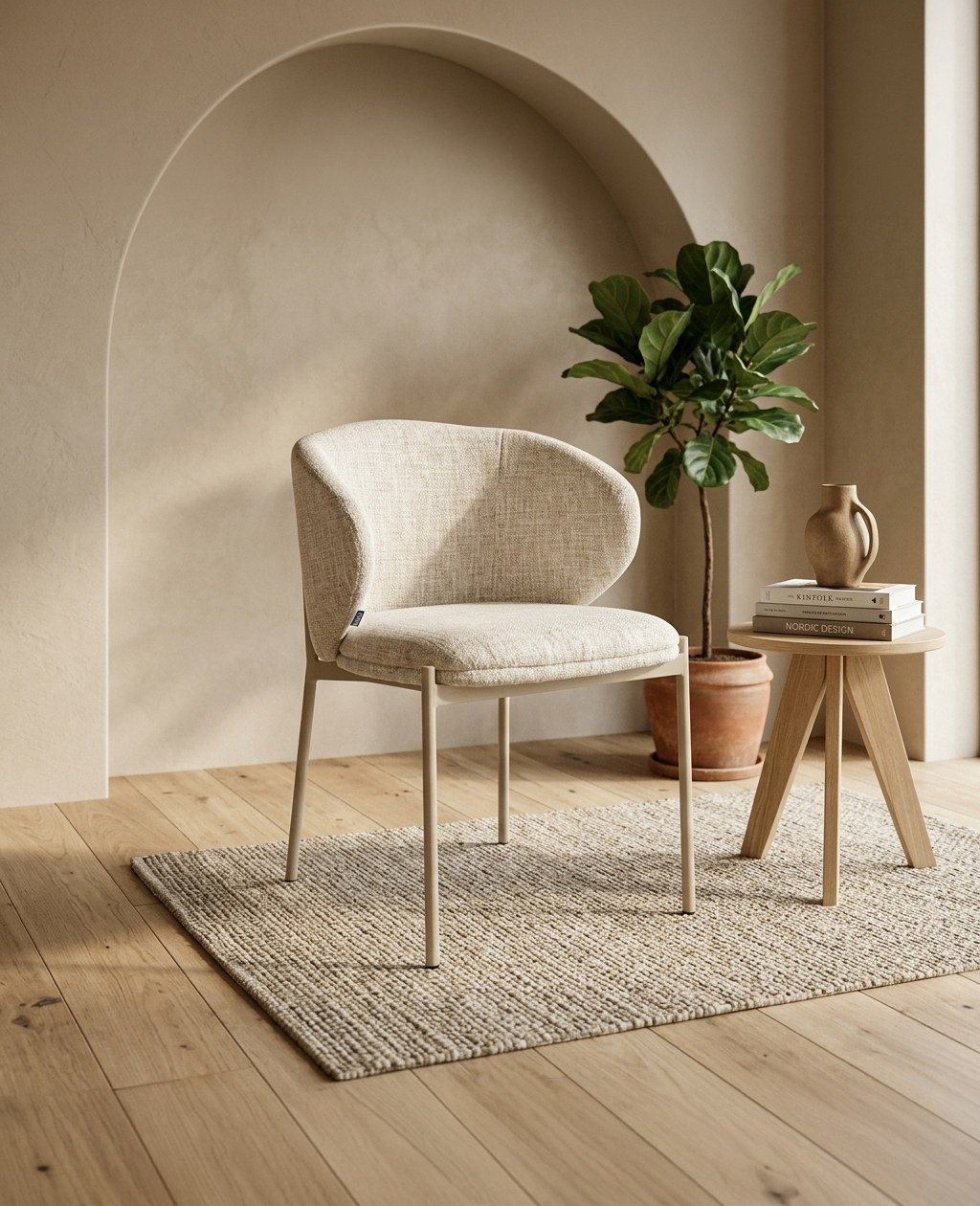 - Crafted with elegant walnut veneer legs, this chair showcases a warm, natural wood aesthetic that brings a touch of sophistication to any space. The rich grain detailing adds visual depth, while the sturdy construction ensures lasting stability and refined style.