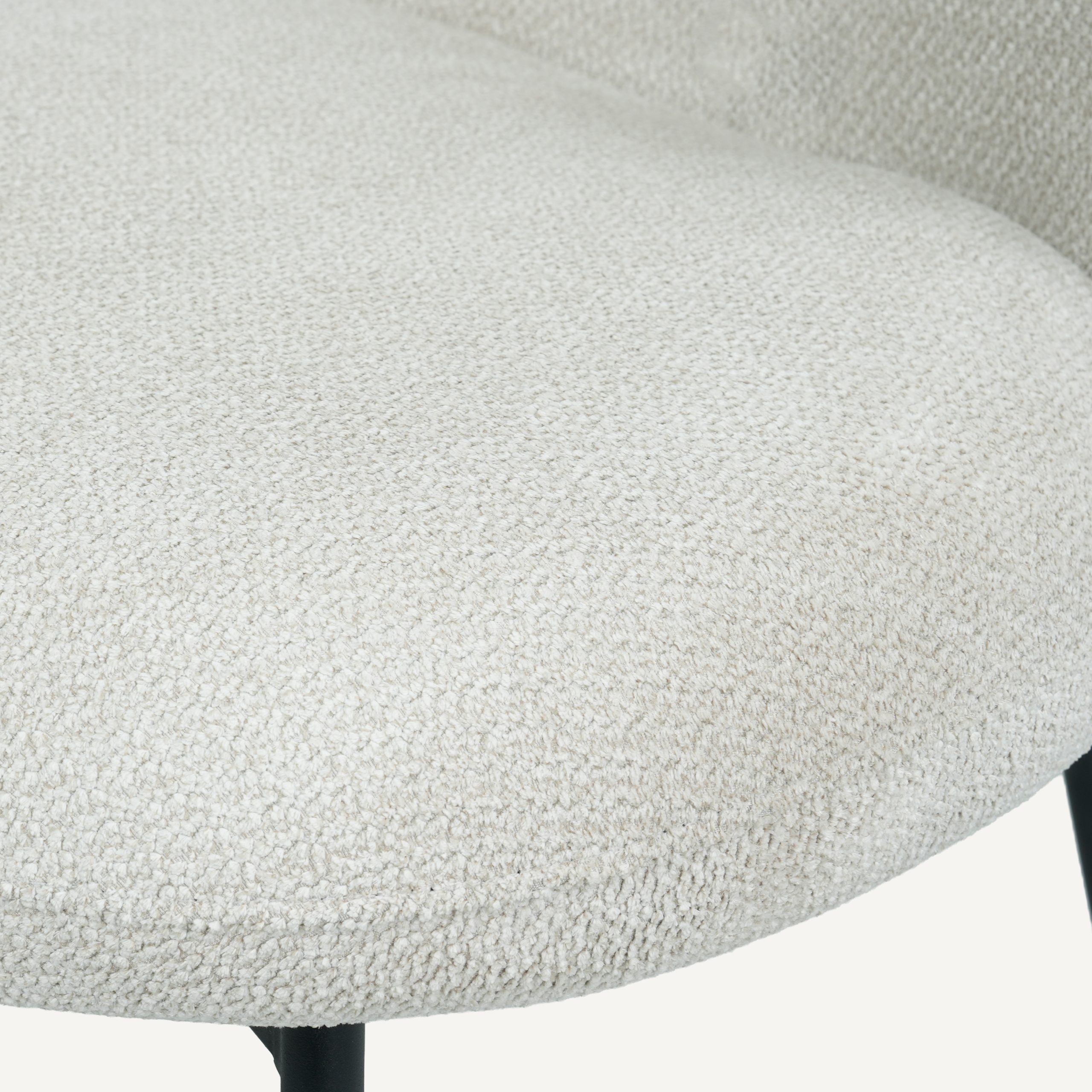 Introduce a touch of contemporary elegance to your dining space with the Geomi chair, thoughtfully designed for both style and exceptional comfort. The chair features a plush, padded seat and a supportive backrest with subtle horizontal stitching, all fully upholstered in a high-quality, breathable fabric cover. Providing peace of mind alongside premium comfort, this fabric is perfectly safe for everyday use as it is OEKO-TEX® certified, meaning it has been rigorously tested and proven to be free from harmful substances and chemicals. Supporting this inviting seat are sleek, black epoxy steel legs that offer a striking visual contrast to the light upholstery. Beyond their modern aesthetic, the epoxy-coated steel construction ensures the legs are highly durable, rust-resistant, and protected against everyday chips and scratches, making the Geomi chair a safe, sturdy, and sophisticated addition to your home.