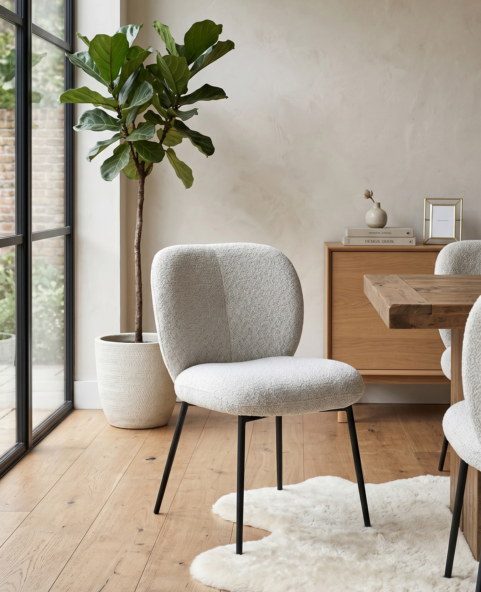 Stylish comfort meets practicality. Fizin chair crafted with easy-clean OEKO-TEX® fabric and strong epoxy-coated steel legs for lasting durability and effortless maintenance.