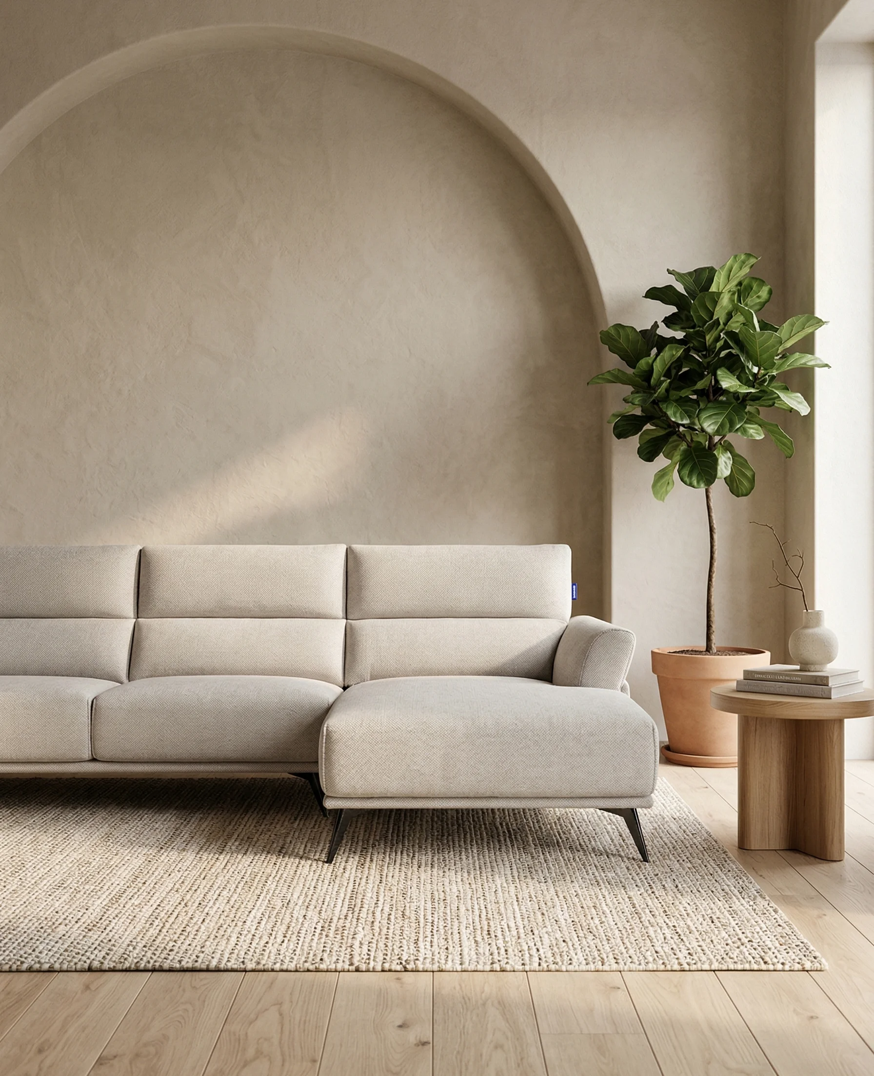 The Leon L-Shaped Sofa is engineered to handle the demands of a busy household while maintaining its sleek, sophisticated appearance. It features a generous L-shaped chaise, giving you and your family plenty of room to stretch out for movie marathons or cozy afternoon naps. To ensure personalized comfort, the sofa is equipped with multi-position adjustable headrests, allowing you to find the exact angle needed for neck and head support. Crafted for a "mess-proof" lifestyle, the Leon is wrapped in high-performance, spill and stain-resistant fabric, ensuring that accidental drips or paw prints are easy to manage. It’s a durable, stylish, and incredibly comfortable centrepiece that invites you to live worry-free.