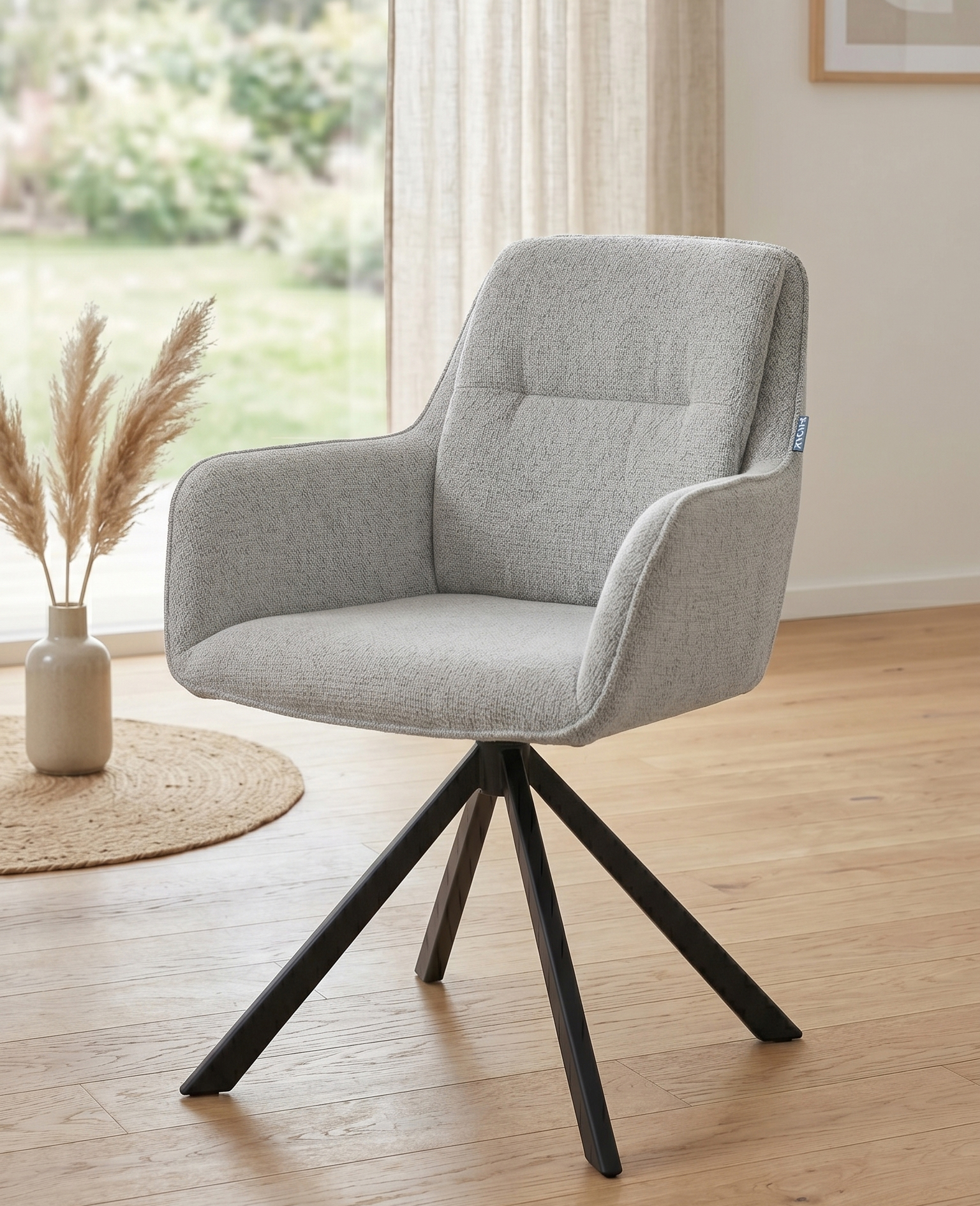 The Hansz swivel chair is a sophisticated blend of industrial resilience and modern comfort, designed to integrate seamlessly into high-end office or residential spaces. Its silhouette is defined by a plush, ergonomically padded seat that prioritizes long-term support, wrapped in premium OEKO-TEX® certified fabric to ensure a chemical-free and eco-conscious seating experience. This commitment to sustainability is matched by high-performance engineering, featuring a smooth 180-degree swivel mechanism for effortless mobility and sleek epoxy steel legs that provide a scratch-resistant, architectural foundation. The primary advantage of the Hansz chair lies in its "form meets function" philosophy. By choosing OEKO-TEX® materials, you are investing in a healthier indoor environment, while the epoxy-coated steel ensures the piece remains a timeless staple that resists the wear and tear of daily use. The 180-degree swivel offers the perfect balance of dynamic movement and stability, allowing you to pivot between tasks without the bulk of a traditional caster-wheeled chair. Ultimately, the Hansz provides a professional aesthetic with the soul of a lounge chair, offering a durable, stylish, and responsible seating solution for the discerning minimalist.