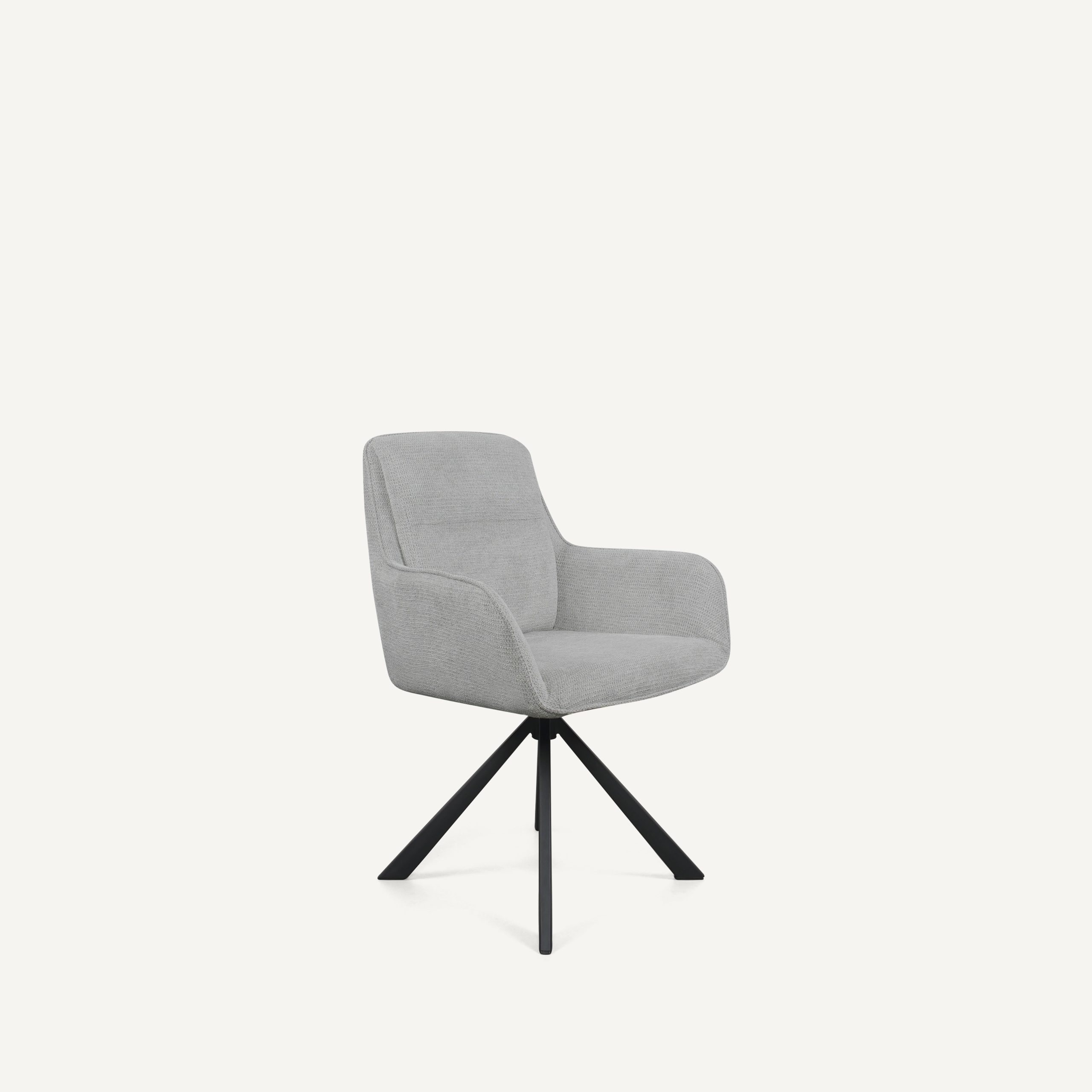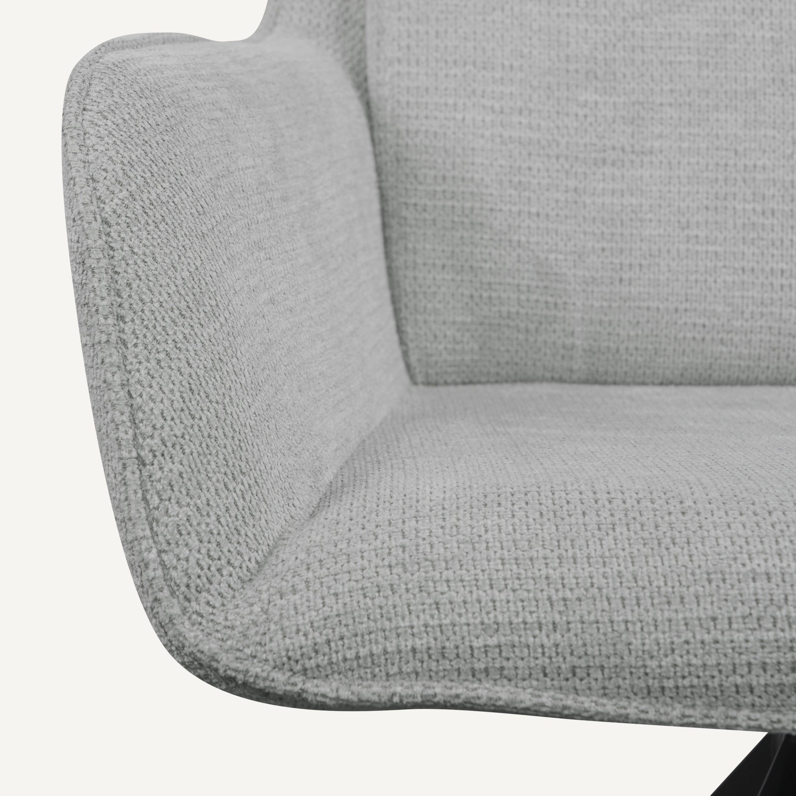 The Hansz chair featuring Oeko-Tex® certified upholstery for safe, comfortable everyday use, paired with durable epoxy-coated steel legs for strength and stability.