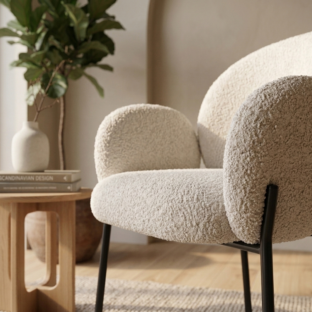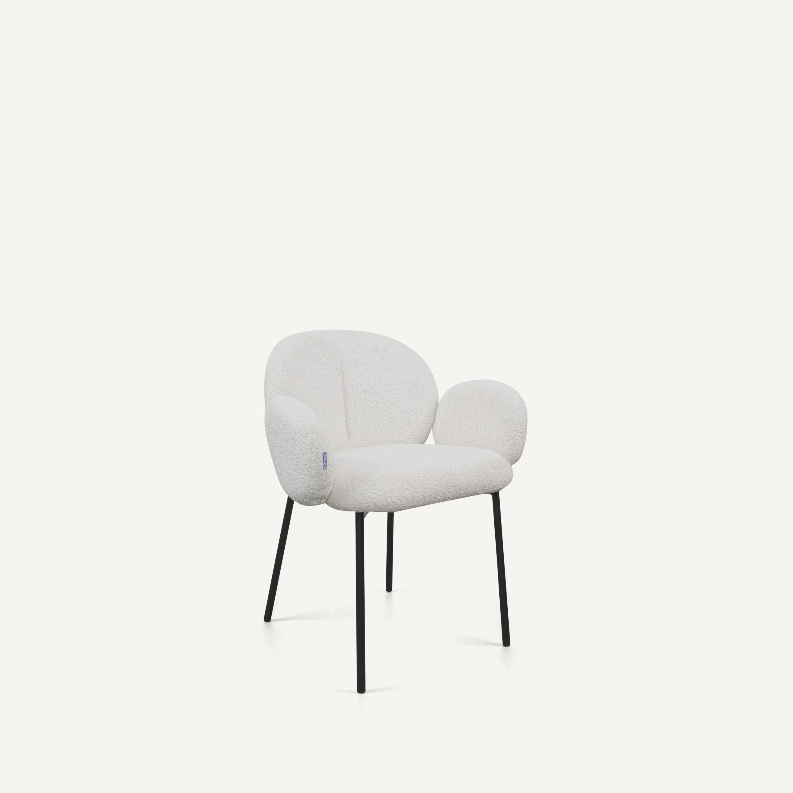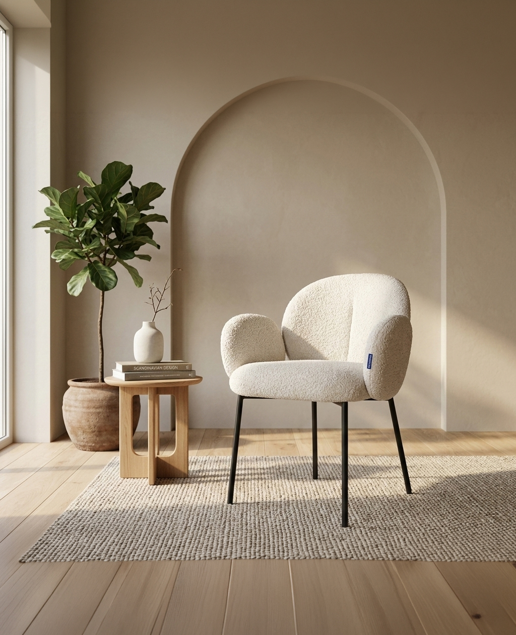 This chair stands out for its exceptionally plush comfort, featuring certified fabric that feels sumptuously soft to touch. supported by epoxy steel legs, it transforms every meal into a luxurious experience.