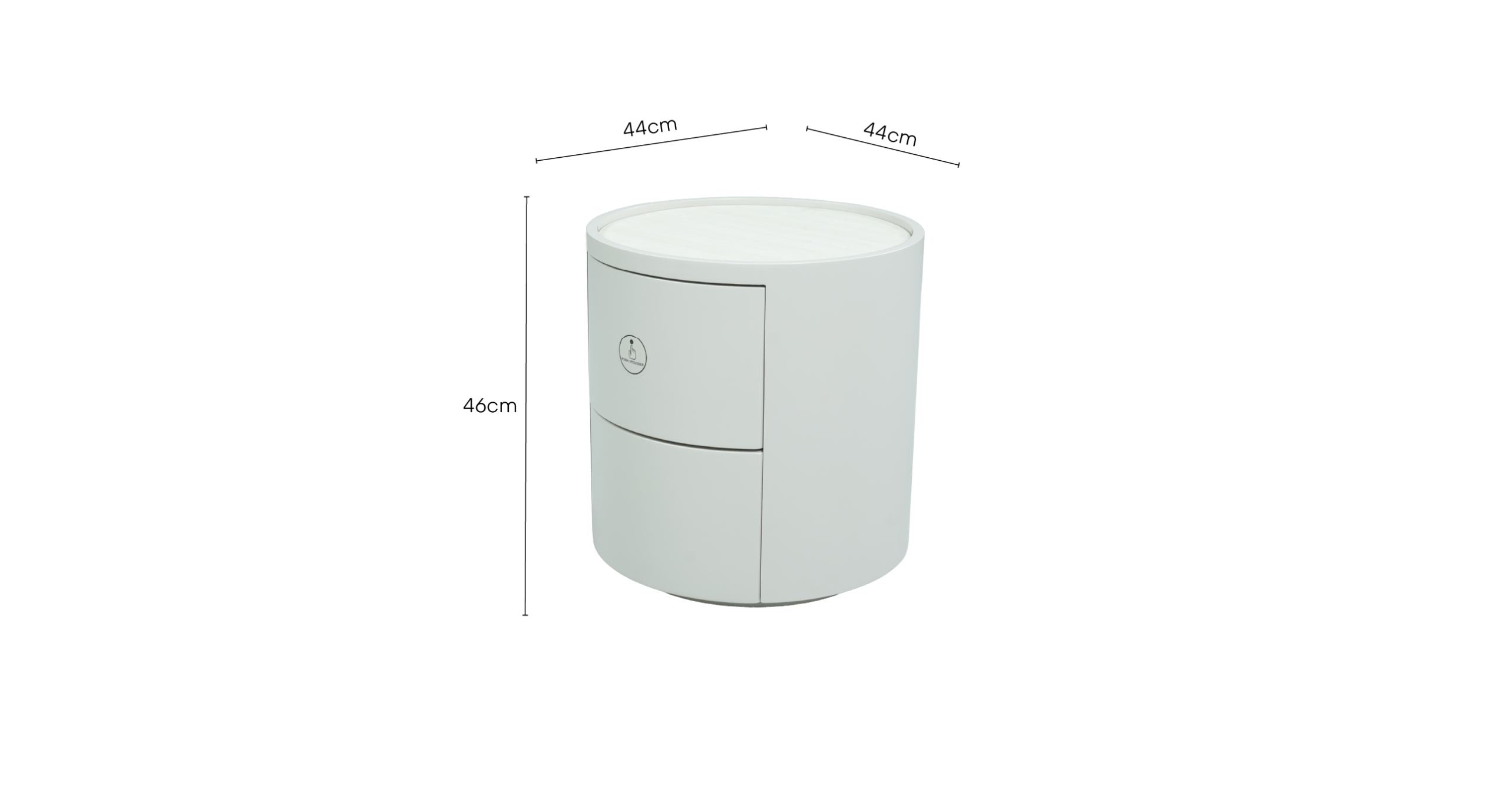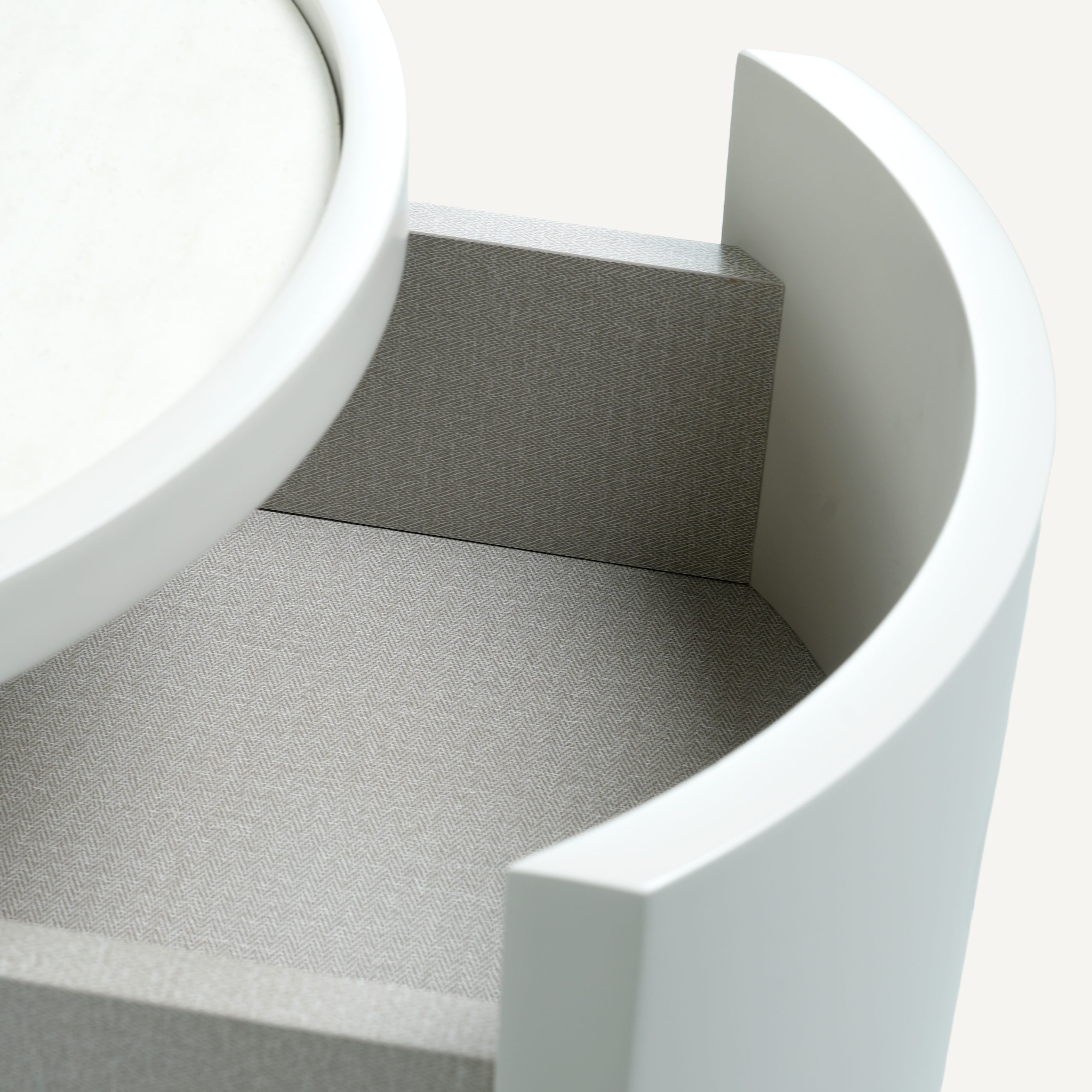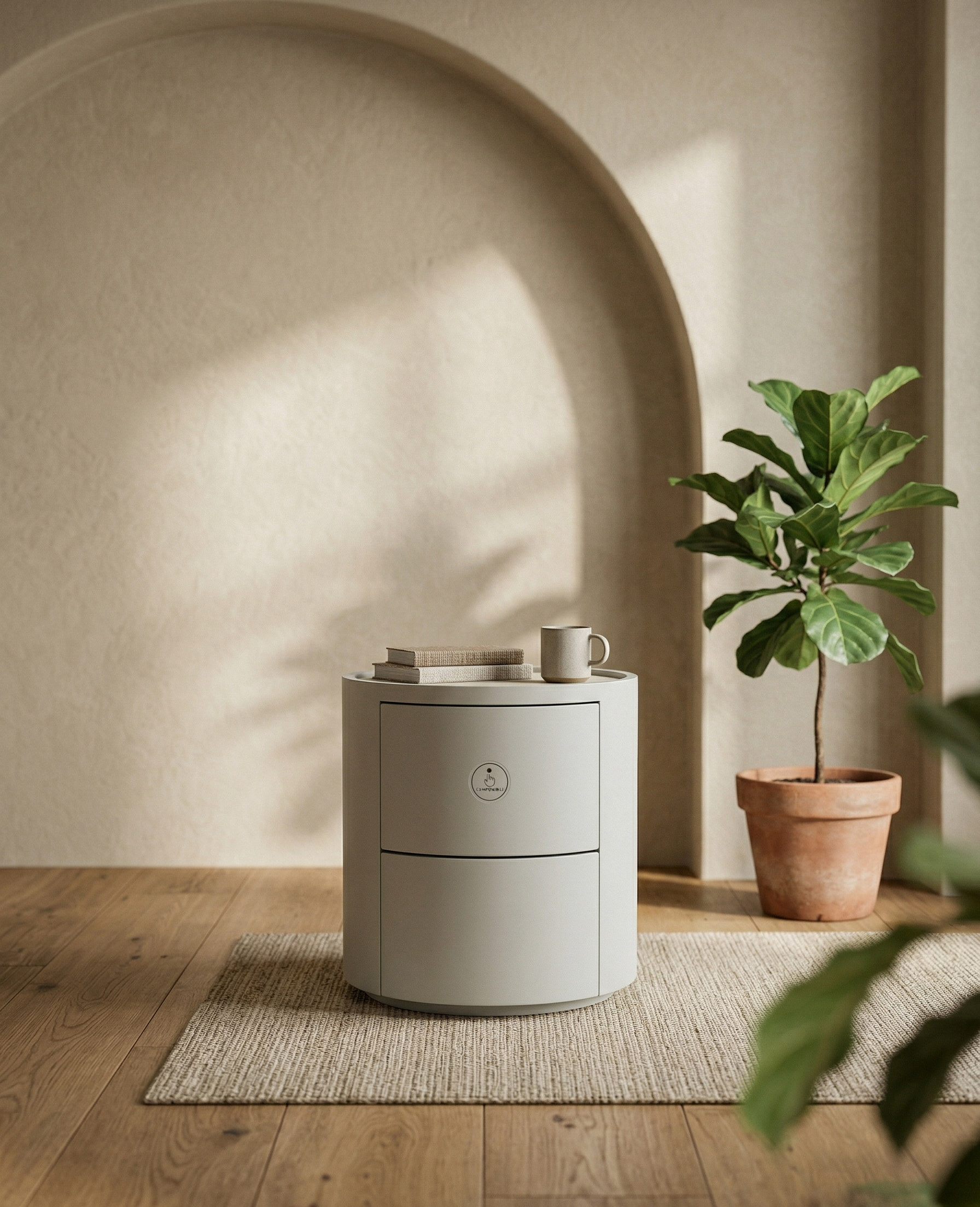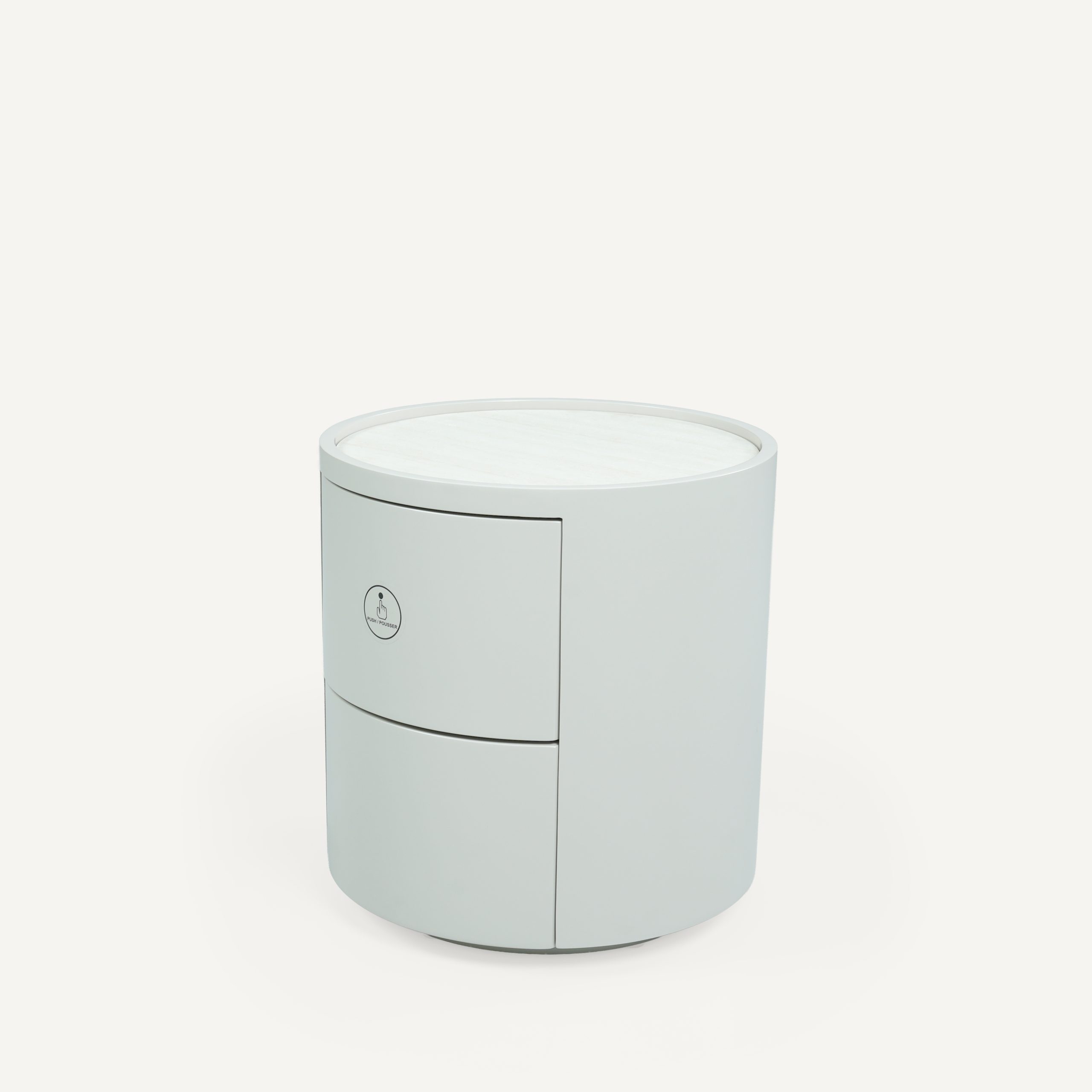 Kobe – A futuristic take on the bedside staple, Kobe is a sleek, cylindrical nightstand that prioritizes clean lines and high-end functionality. Featuring an inset stone-look top, its compact, architectural form is designed to provide a modern, clutter-free aesthetic for the contemporary bedroom.