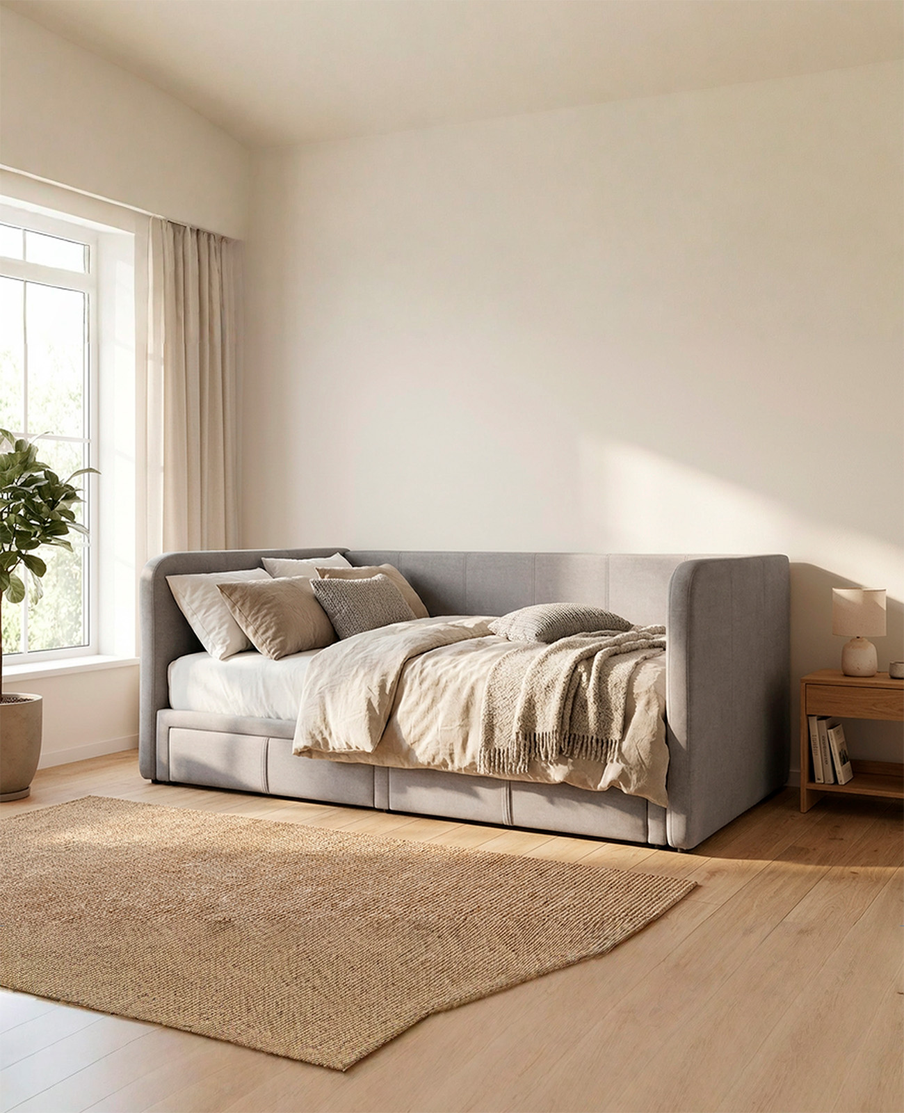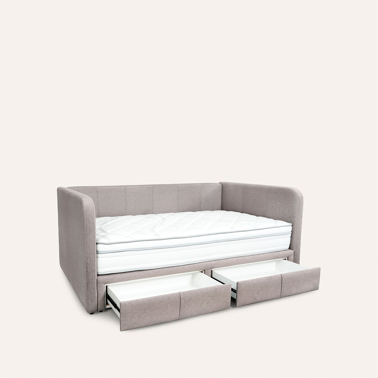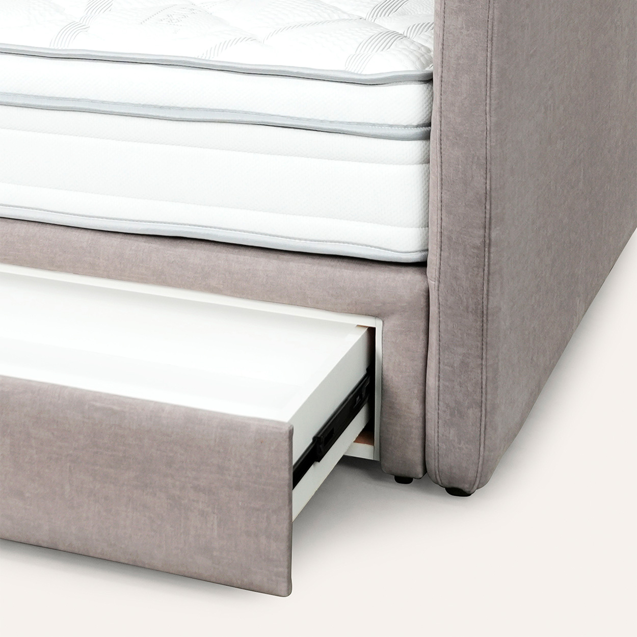 Transform your home with the Lulu Bed and Revive Mattress—the perfect duo for families and guests. The Lulu Bed offers two large storage drawers and safe, OEKO-TEX® certified, spill-resistant upholstery, while the Revive Mattress delivers breathable comfort with certified foam and Dynabounce® Micro Pocket Coils for supportive bounce.