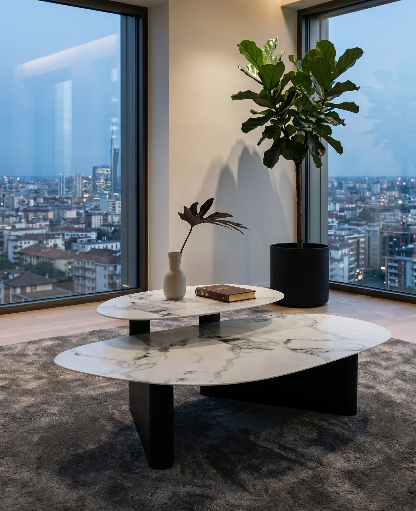 - This coffee table set features a fluid, pebble-like silhouette with soft rounded edges, designed as a dual-height nesting duo that adds visual depth and versatile arrangement options to your living space.