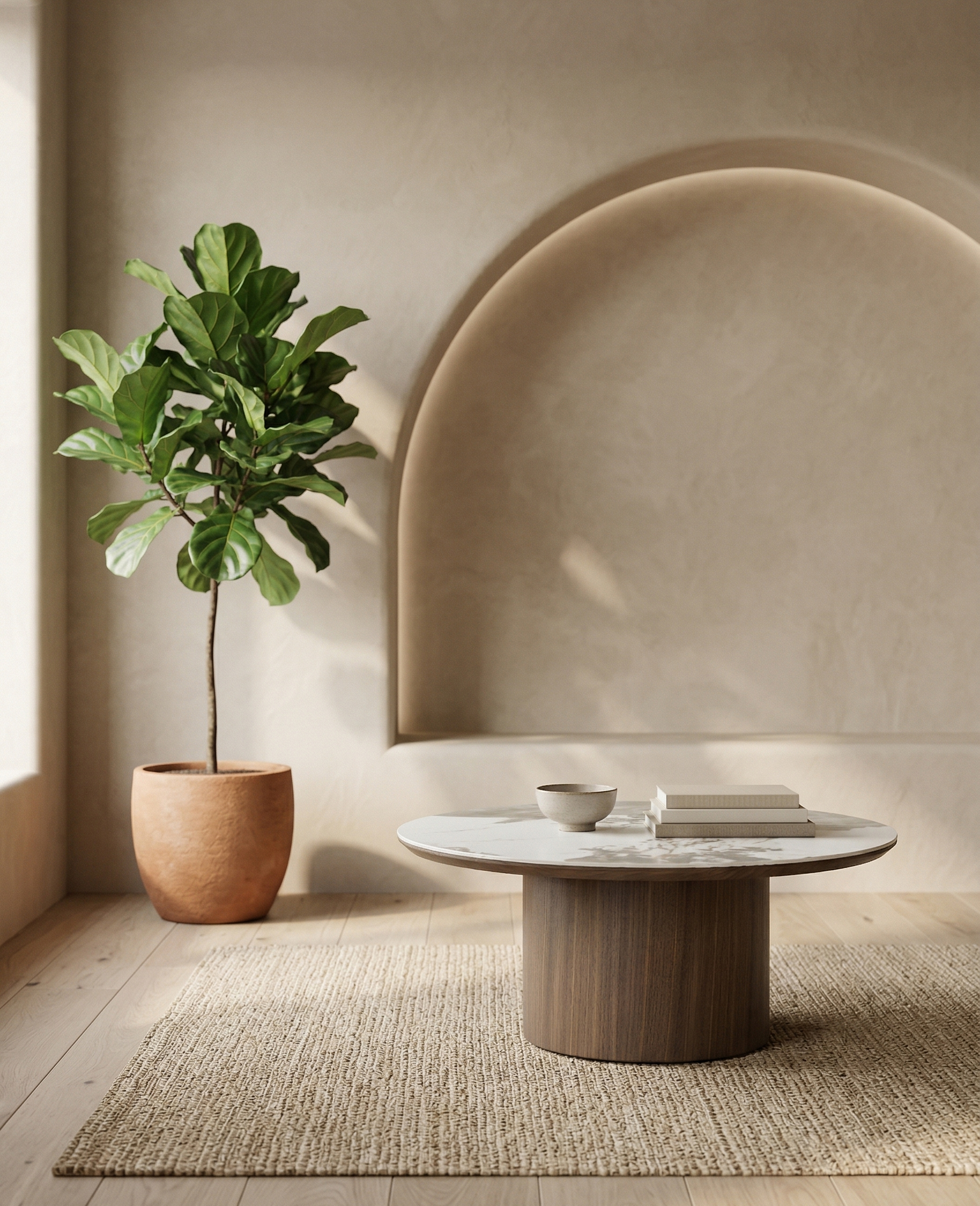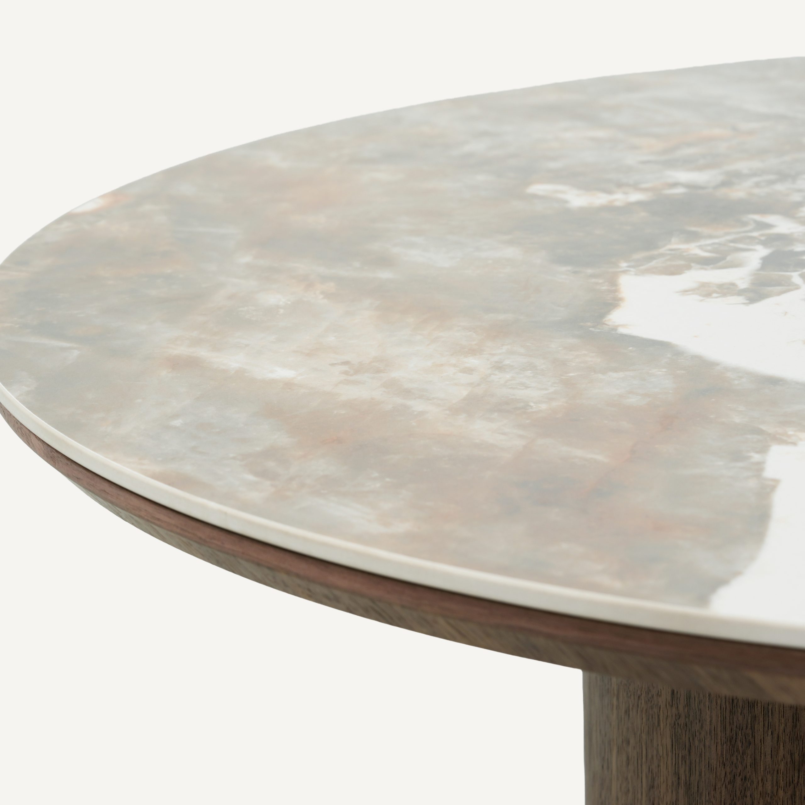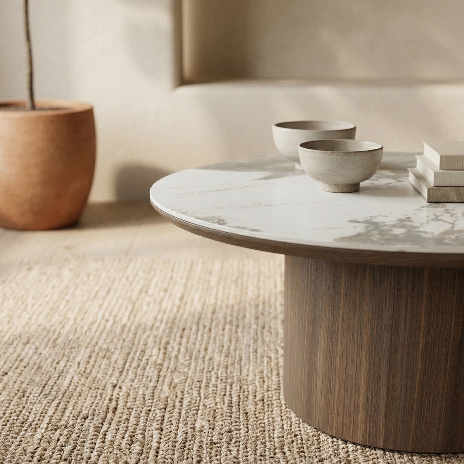 Contemporary coffee table that masterfully balances organic patterns with a heavy, architectural foundation. Defined by its expansive circular top and a massive, single pedestal base, Peno coffee table offers a grounded yet sophisticated silhouette.