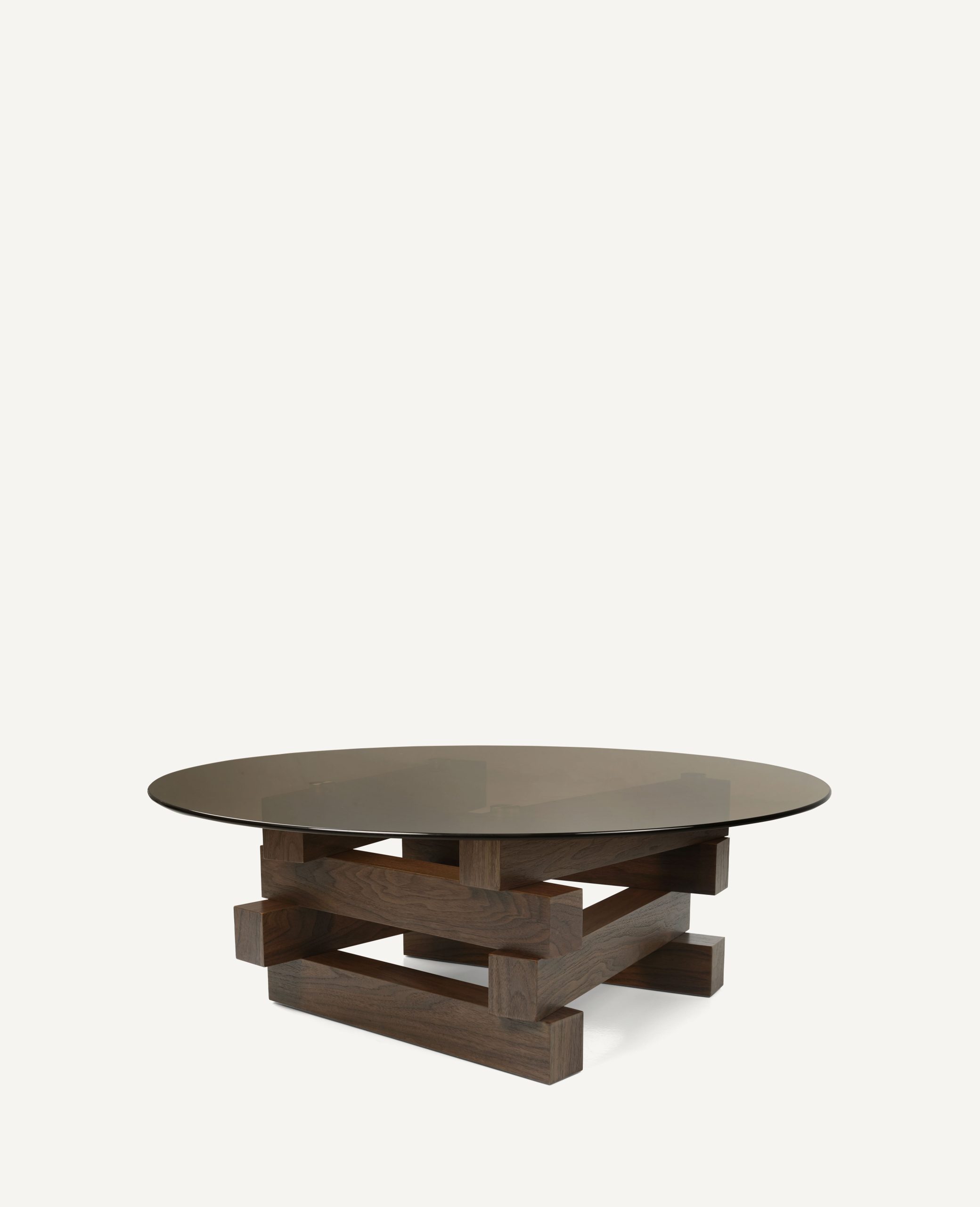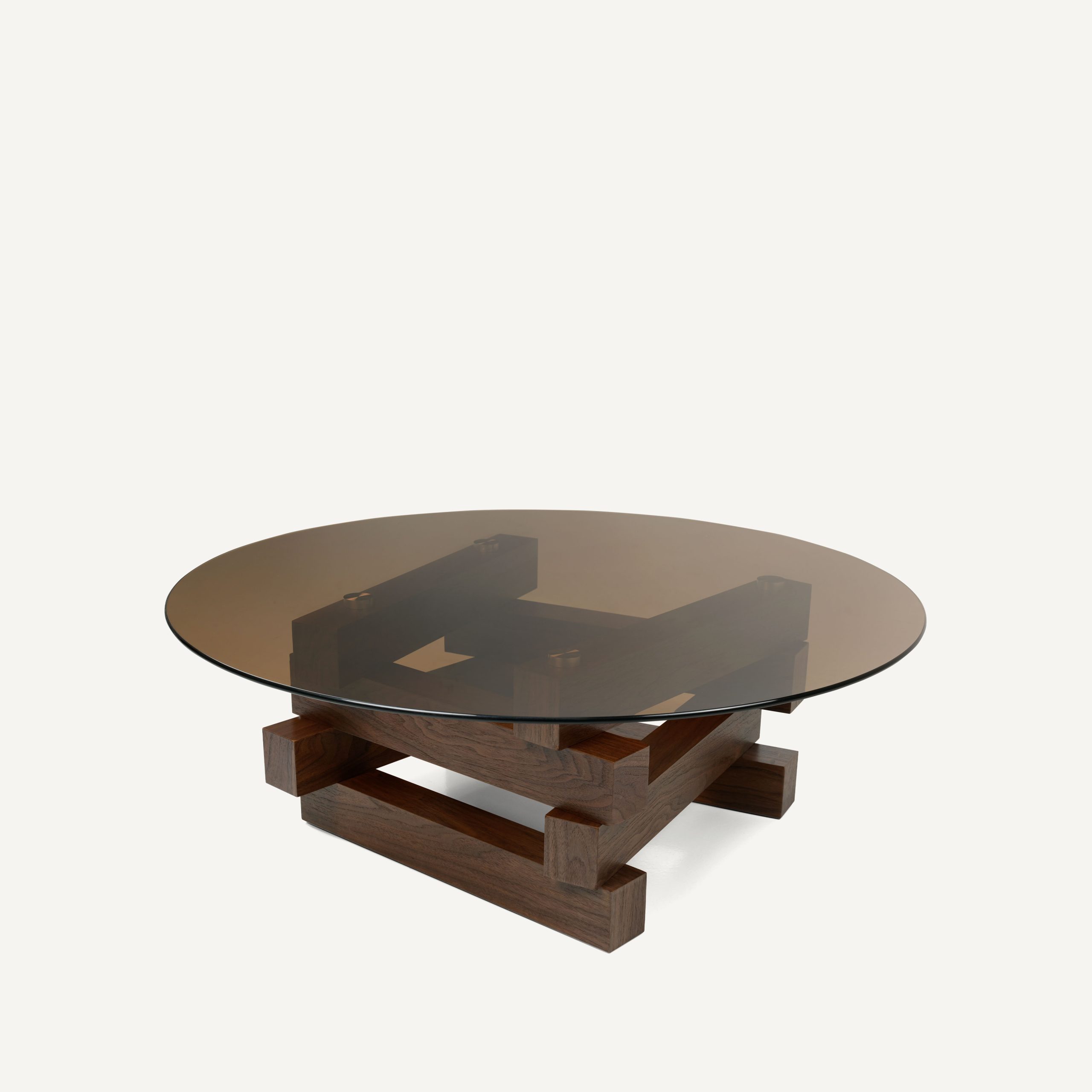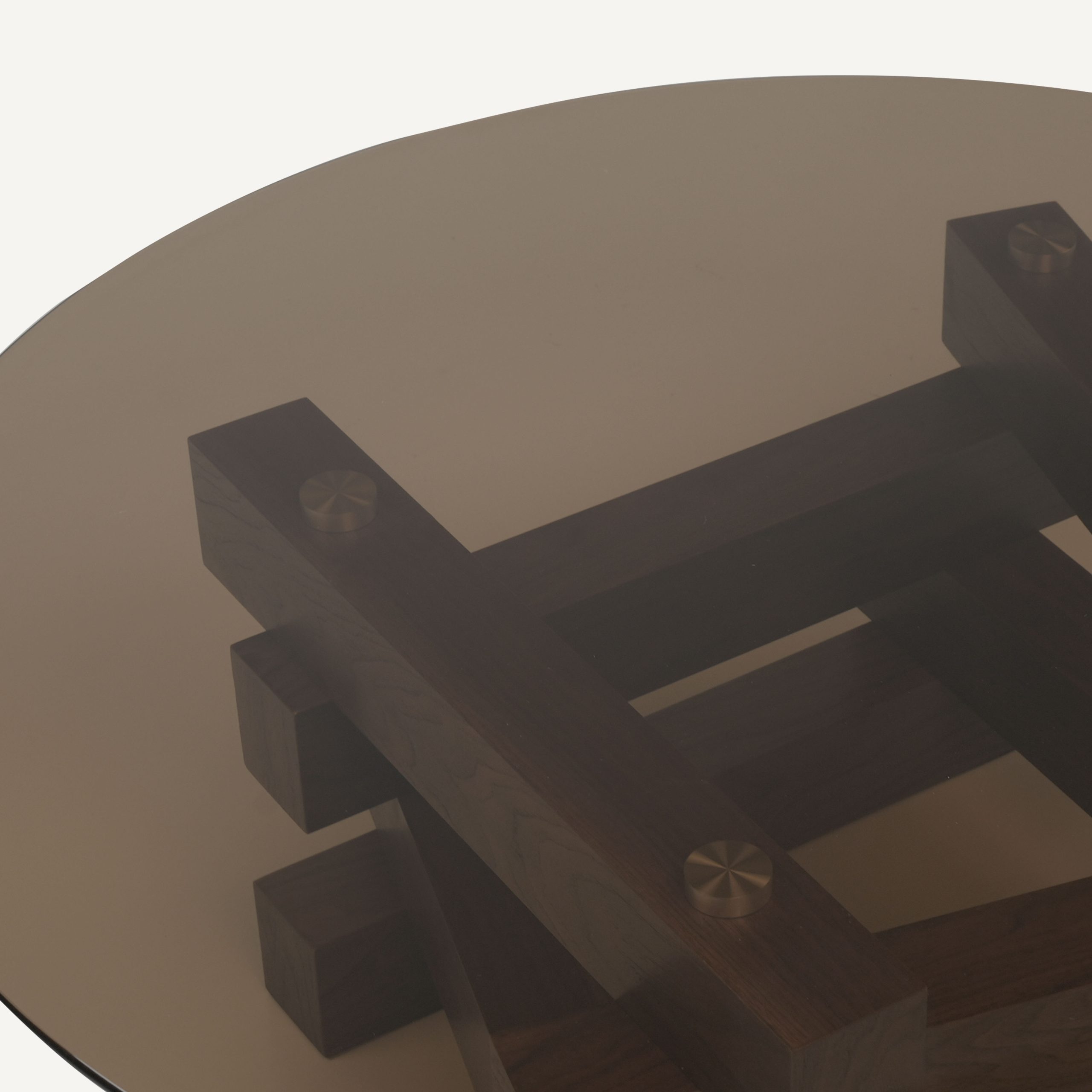 - The tabletops rest on robust, tapered conical bases made of solid wood, providing exceptional stability while acting as a bold architectural statement piece grounded in modern minimalism.