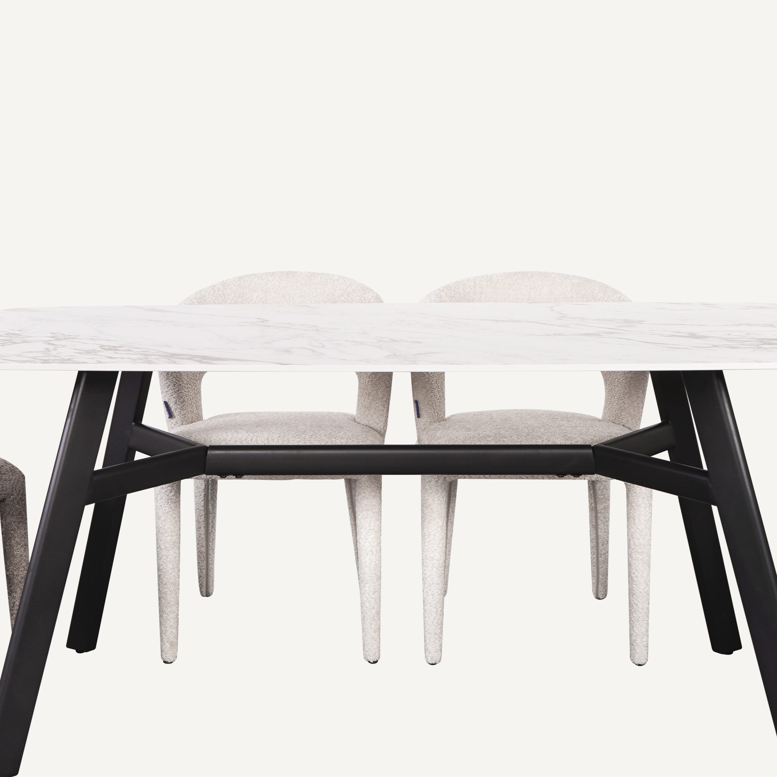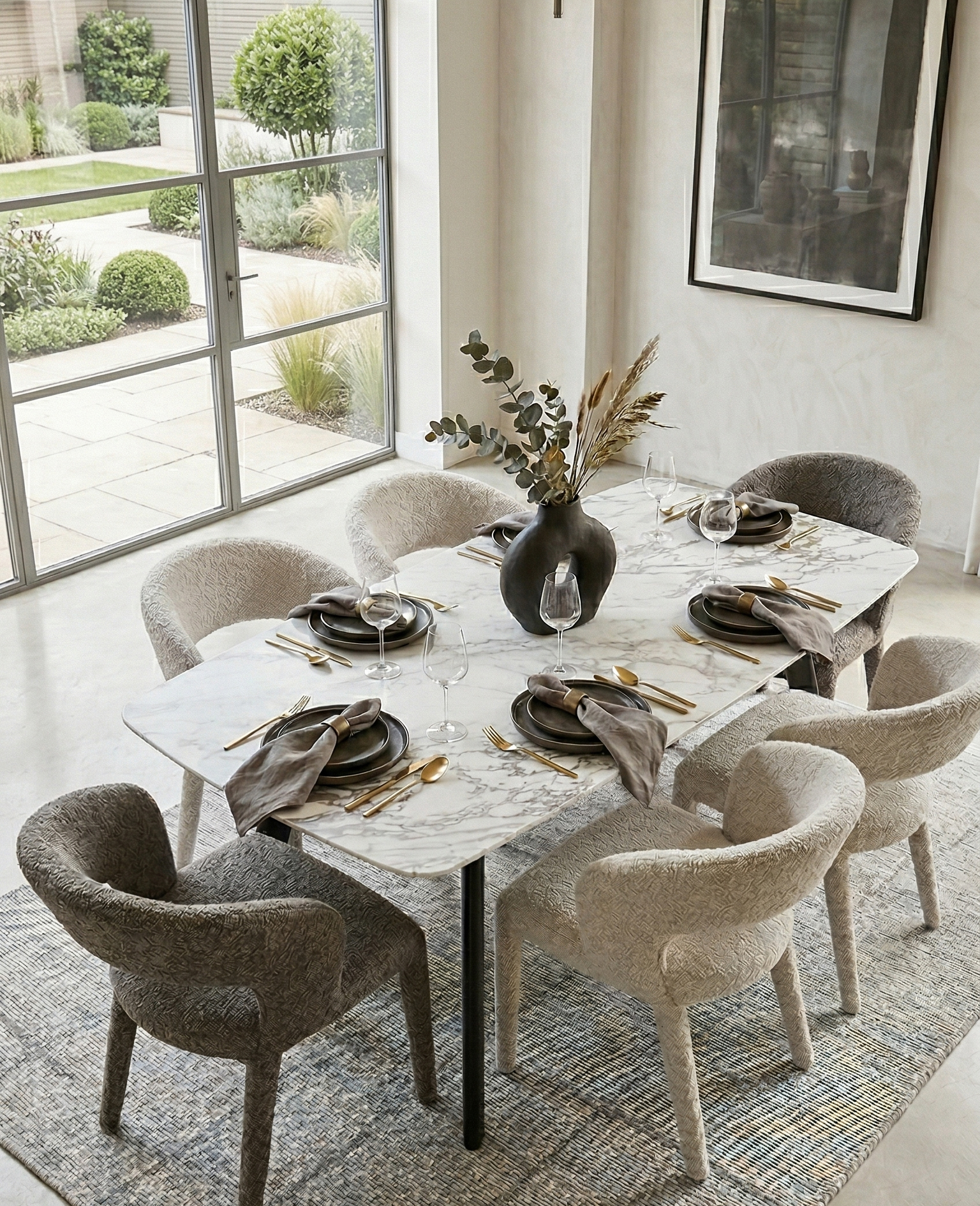 Weekend vibes feel even better when you’re surrounded by loved ones at home, and the Sinoti table sets the perfect scene with its ultra-strong, heat-resistant sintered stone top—highly scratch-proof, stain-resistant, and built to withstand daily use. Supported by a durable walnut veneer base that brings natural warmth and lasting stability, it becomes the ideal spot for family bonding, mealtimes, chitchat, and shared laughter. Paired seamlessly with the Alette Chairs, upholstered in easy-clean, OEKO-TEX® certified fabric, this ensemble embodies understated elegance, transforming your dining area into a refined haven for both casual meals and grand celebrations.