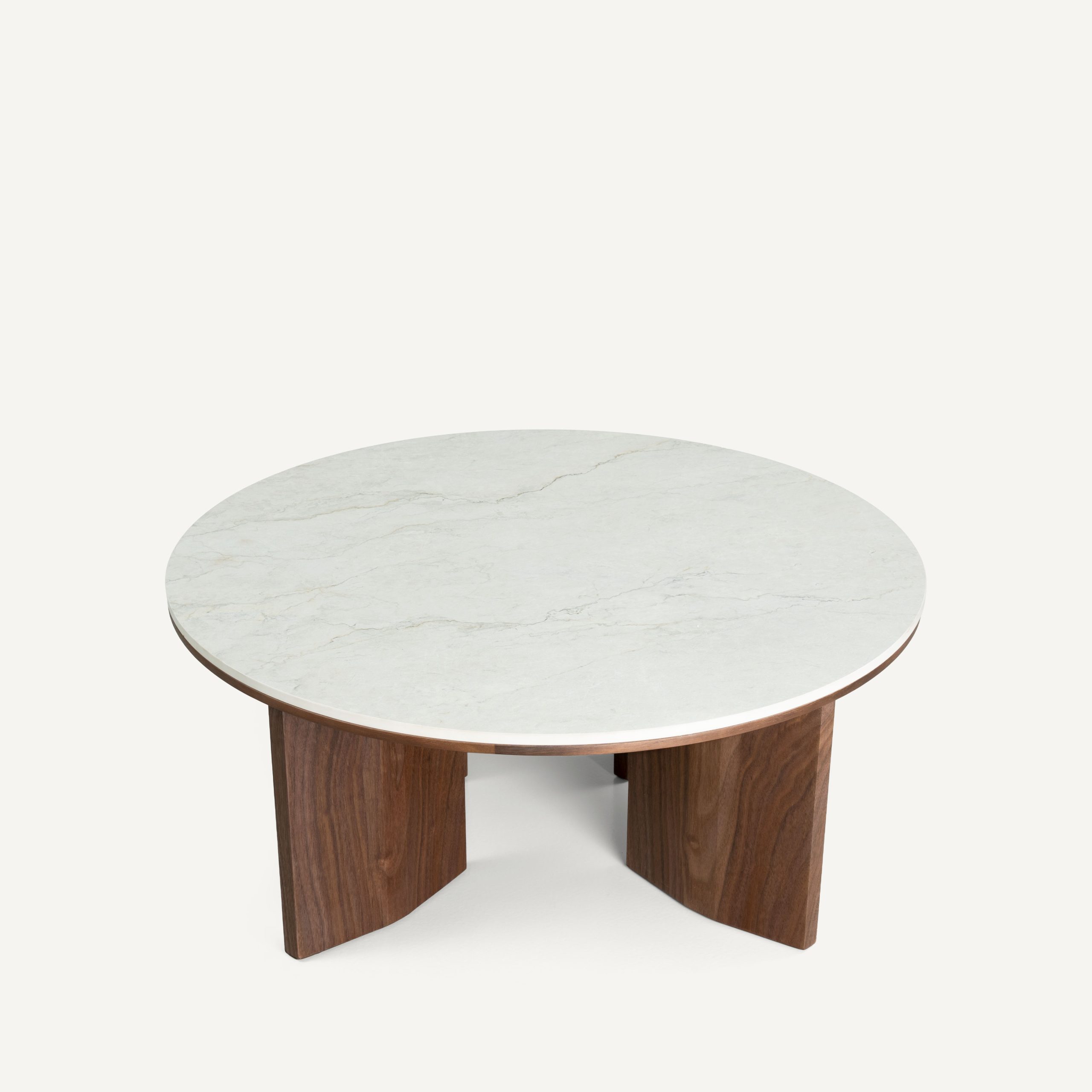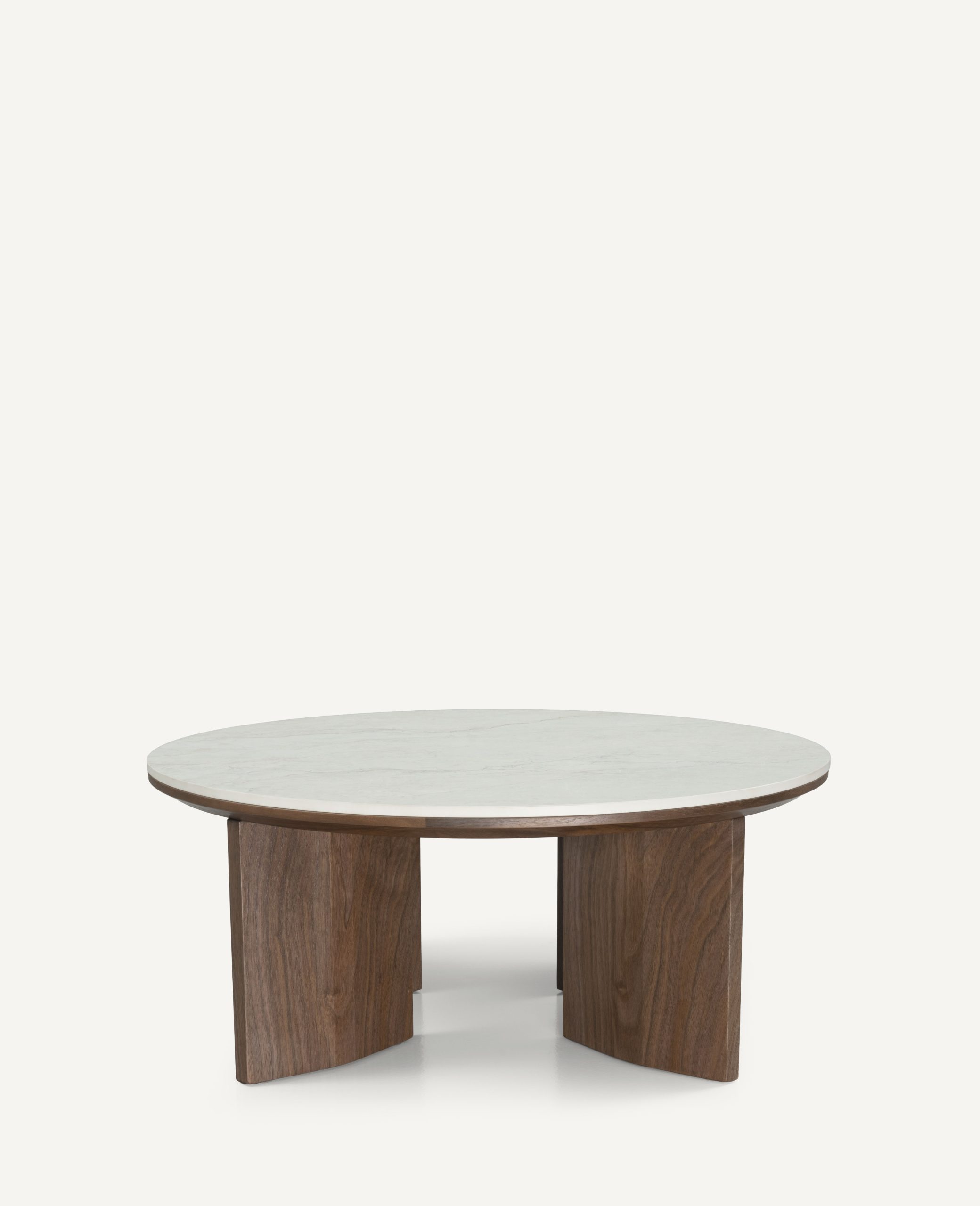 The Darius Coffee Table Set is a stunning embodiment of organic modern design, featuring a sculptural silhouette that effortlessly blends robust stability with refined elegance. This nesting duo is defined by its substantial, tapered pedestal bases crafted from rich, dark-stained walnut wood, which anchors the space with a sense of warmth and earthiness. The tabletops break away from rigid geometry, adopting a soft, pebble-like triangular shape with smooth, rounded edges that are both visually soothing and practical for high-traffic living areas. The true highlight of the design is the exquisite mixed-material surface: a thick, beveled wooden rim frames a luxurious central insert of light cream travertine or sintered stone. This contrast between the deep, organic wood grain and the cool, matte stone creates a sophisticated tactile experience, making the table not just a functional surface, but a captivating centerpiece perfect for Japandi, minimalist, or contemporary interiors.