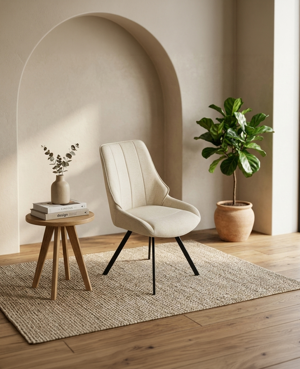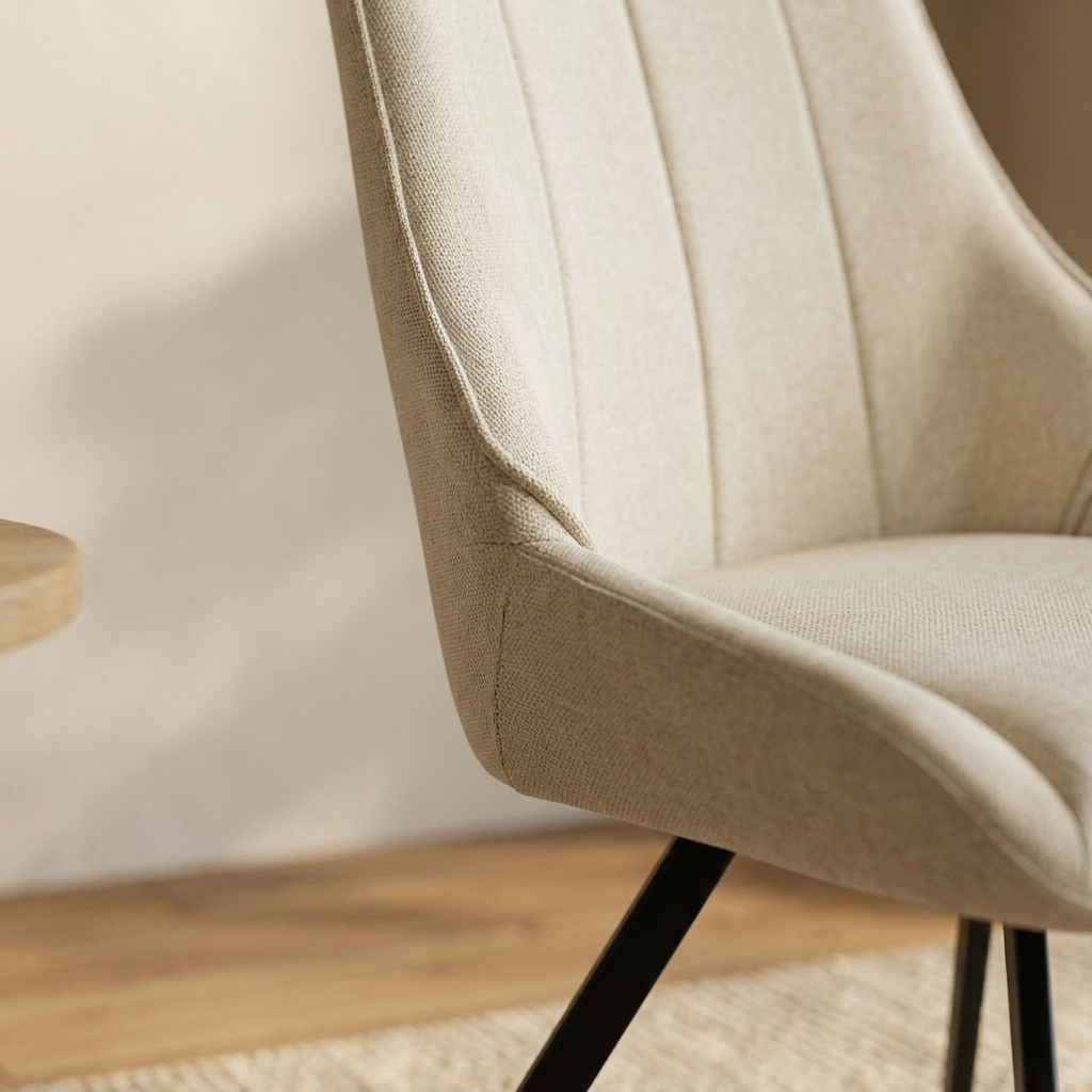 Seren fabric chair features durable Oeko-Tex certified upholstery, ensuring it is safe, comfortable, and eco-friendly. It’s strong epoxy metal legs provide stability and a sleek, modern look for any dining or workspace.