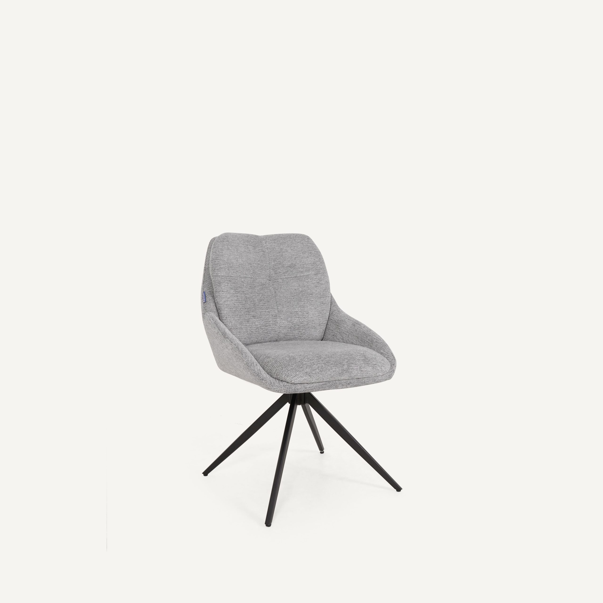 The Slaz chair combines Oeko-Tex® certified fabric, an ergonomic padded seat with swivel function and durable epoxy steel legs for a sophisticated, modern interior.