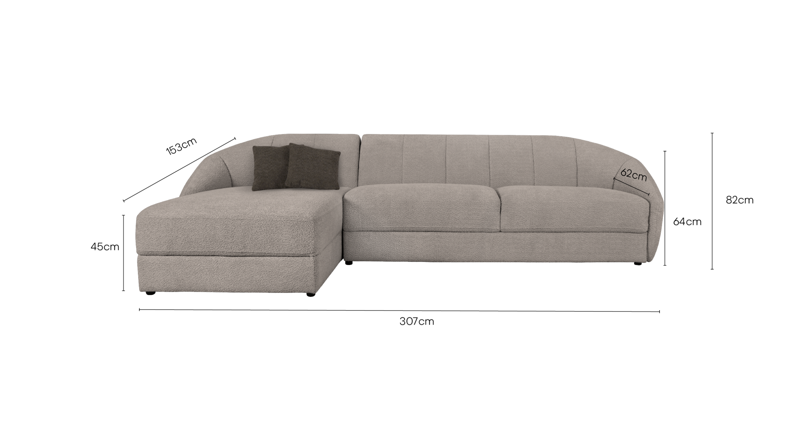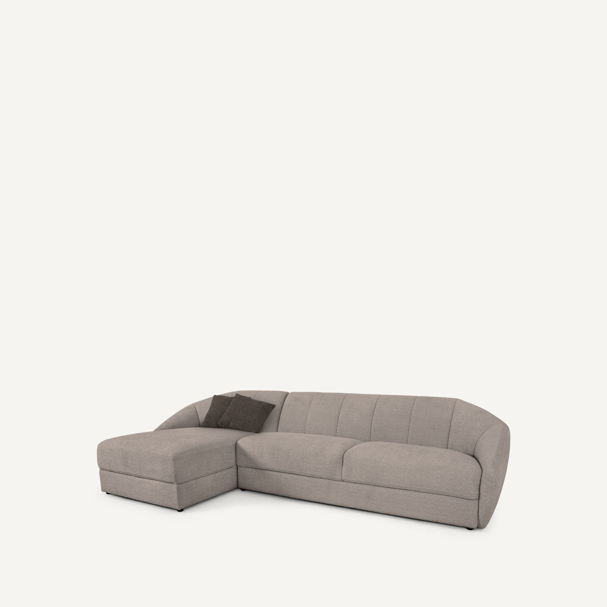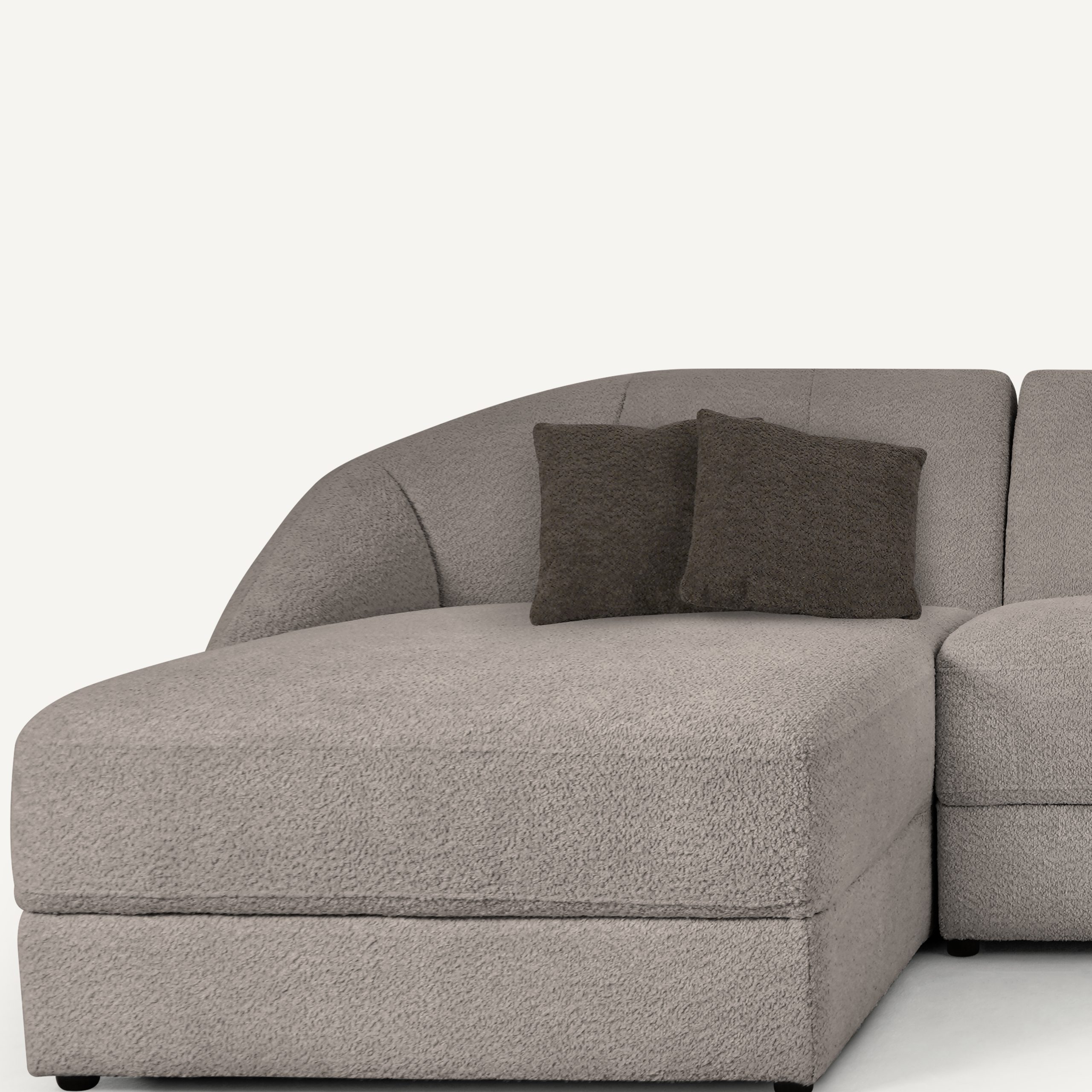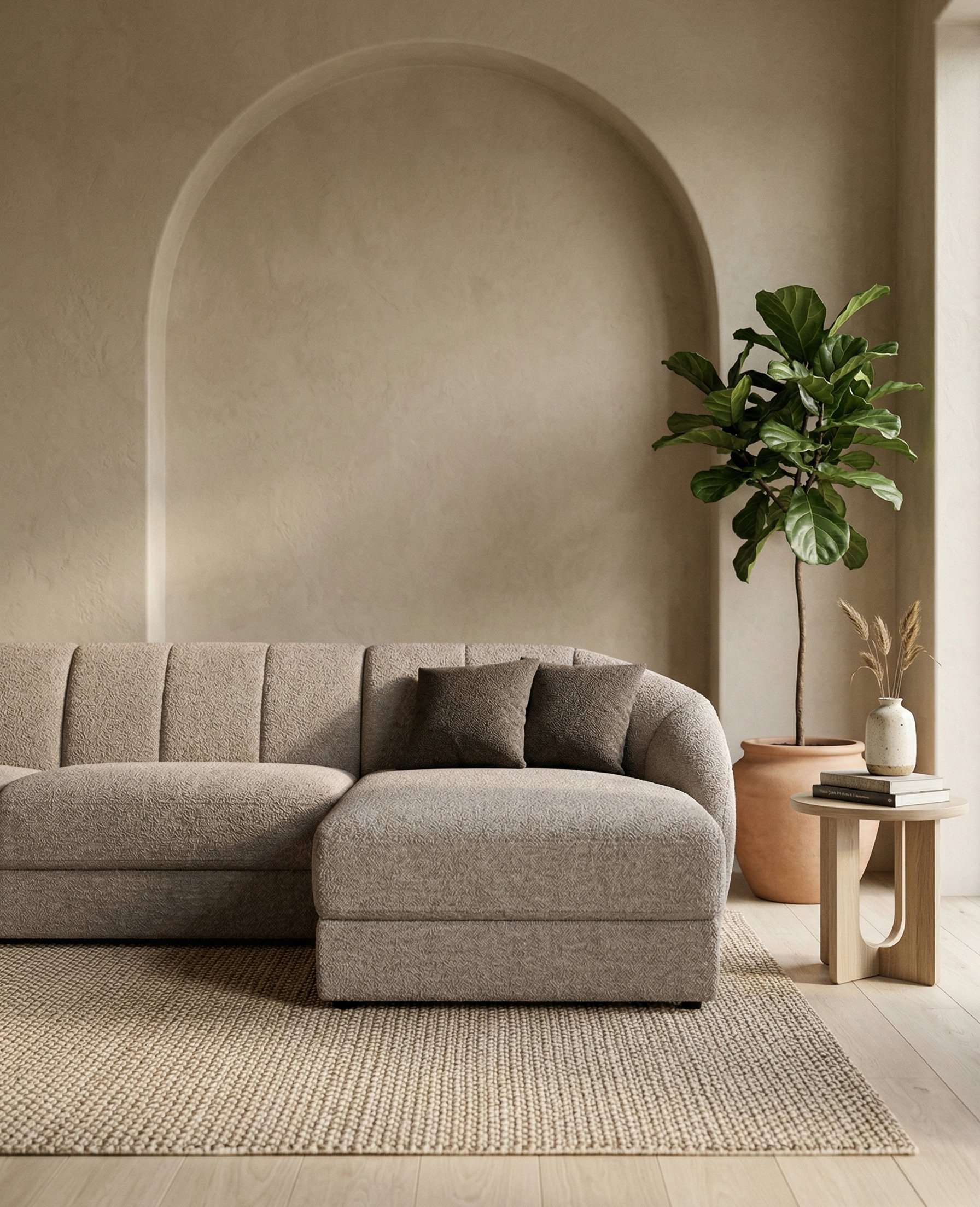 Redefine your home with the soft, sweeping lines of the Sonar sectional. This stunning piece features an asymmetrical curved backrest and elegant vertical channel stitching for a high-end boutique look. Its deep chaise and plush, rounded arms create an inviting sanctuary, making it the perfect focal point for a minimalist or Scandinavian-inspired open-plan interior.