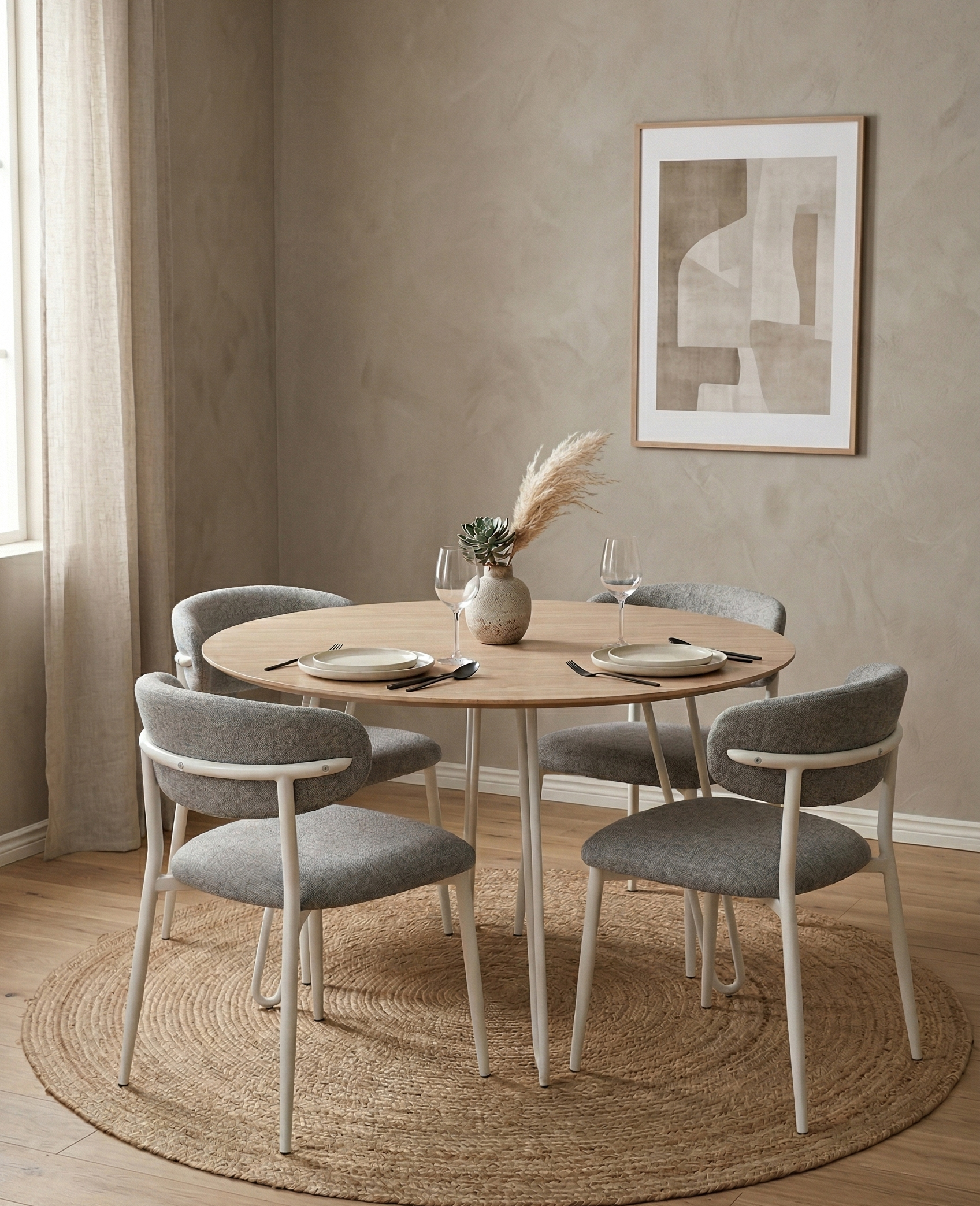 Weekend vibes feel even better when you’re surrounded by loved ones at home, and the Sinoti table sets the perfect scene with its ultra-strong, heat-resistant sintered stone top—highly scratch-proof, stain-resistant, and built to withstand daily use. Supported by a durable walnut veneer base that brings natural warmth and lasting stability, it becomes the ideal spot for family bonding, mealtimes, chitchat, and shared laughter. Paired seamlessly with the Alette Chairs, upholstered in easy-clean, OEKO-TEX® certified fabric, this ensemble embodies understated elegance, transforming your dining area into a refined haven for both casual meals and grand celebrations.