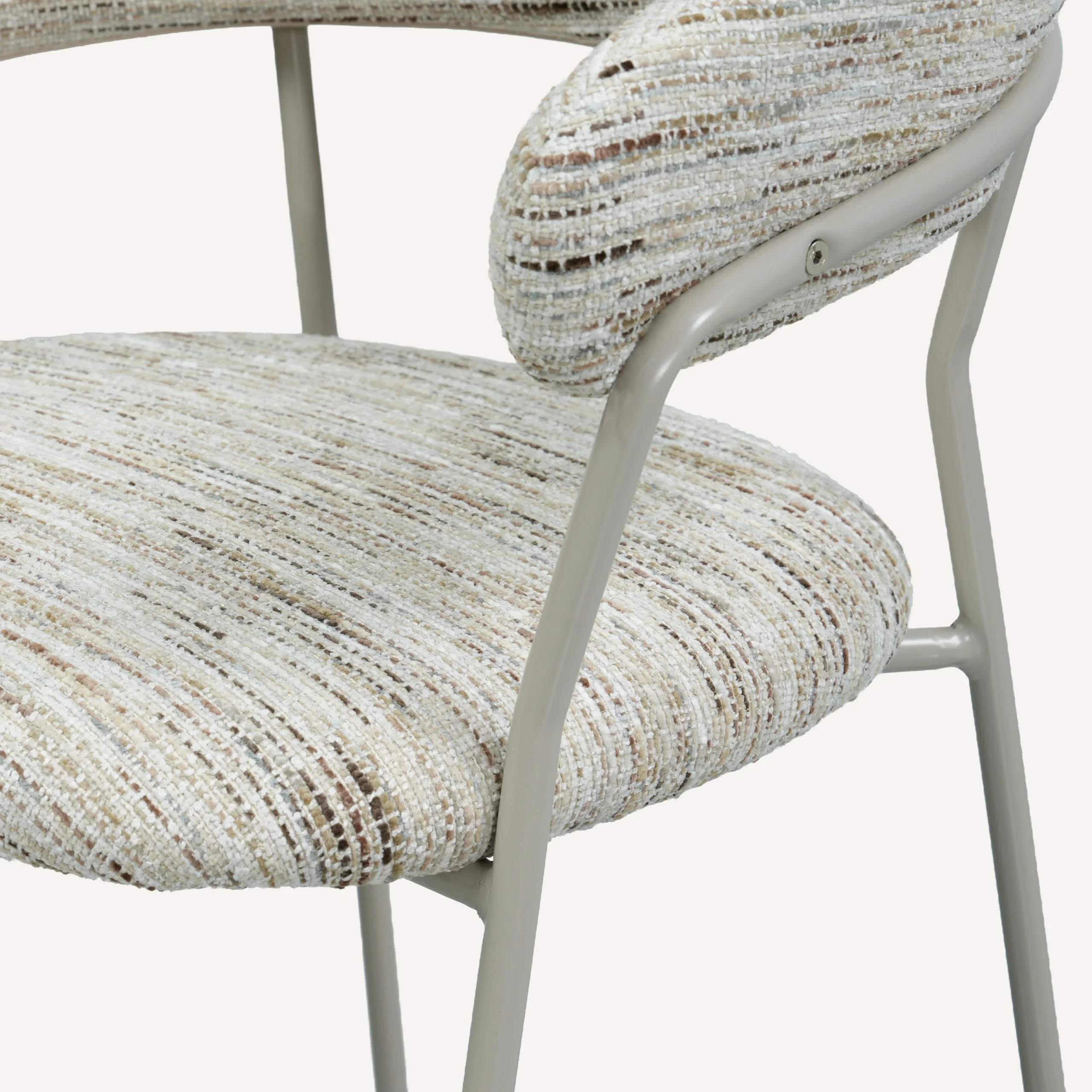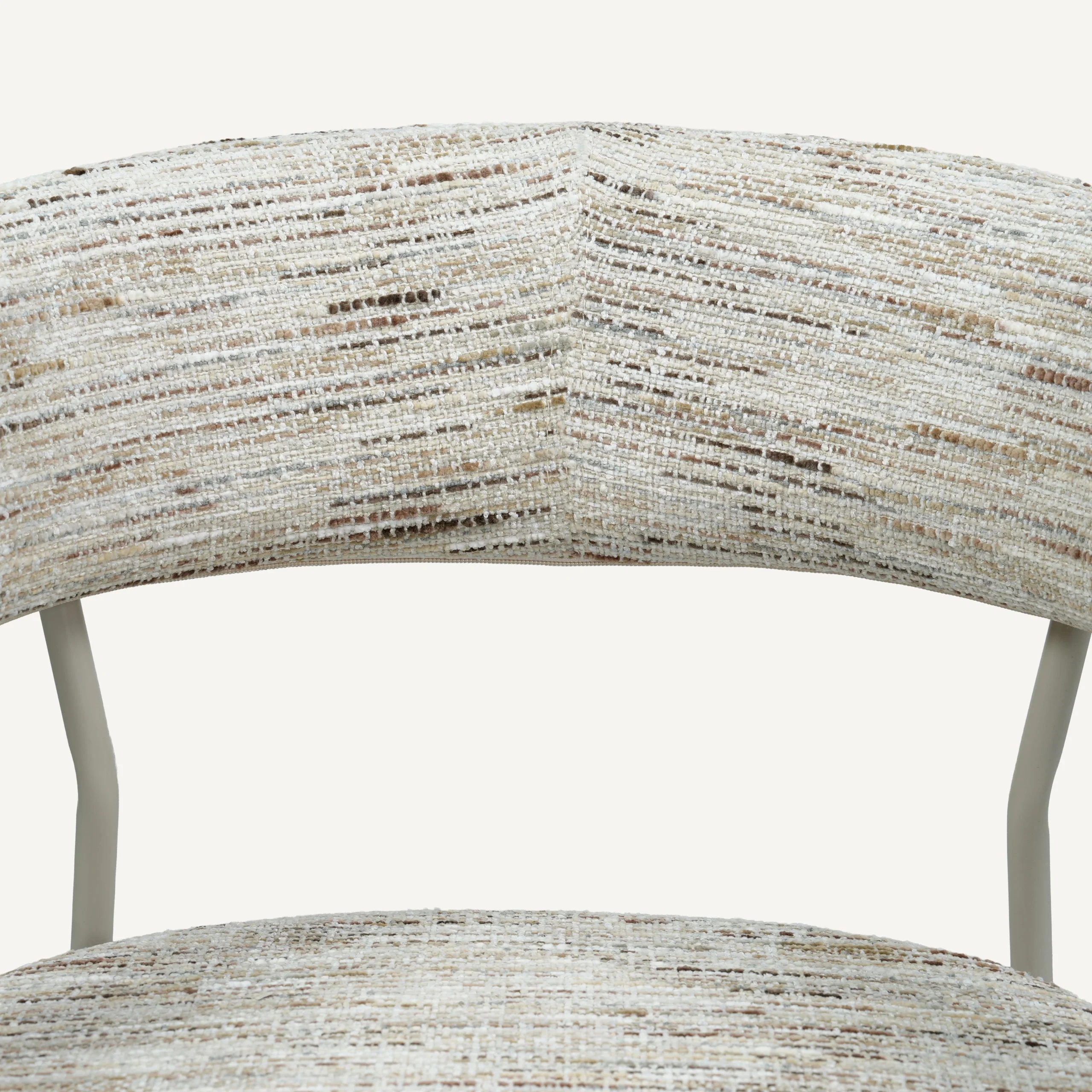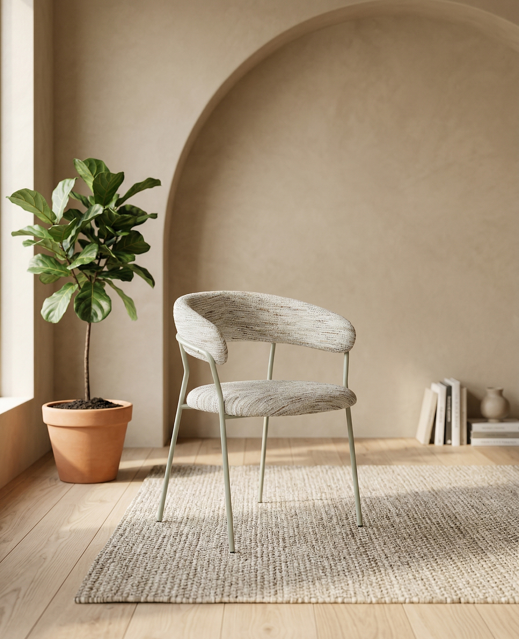 Elevate your interior with the fluid, architectural design of the Tissi chair. This piece features a unique curved backrest that seamlessly transitions into integrated arms, providing a tailored, embracing feel with a lightweight visual profile.