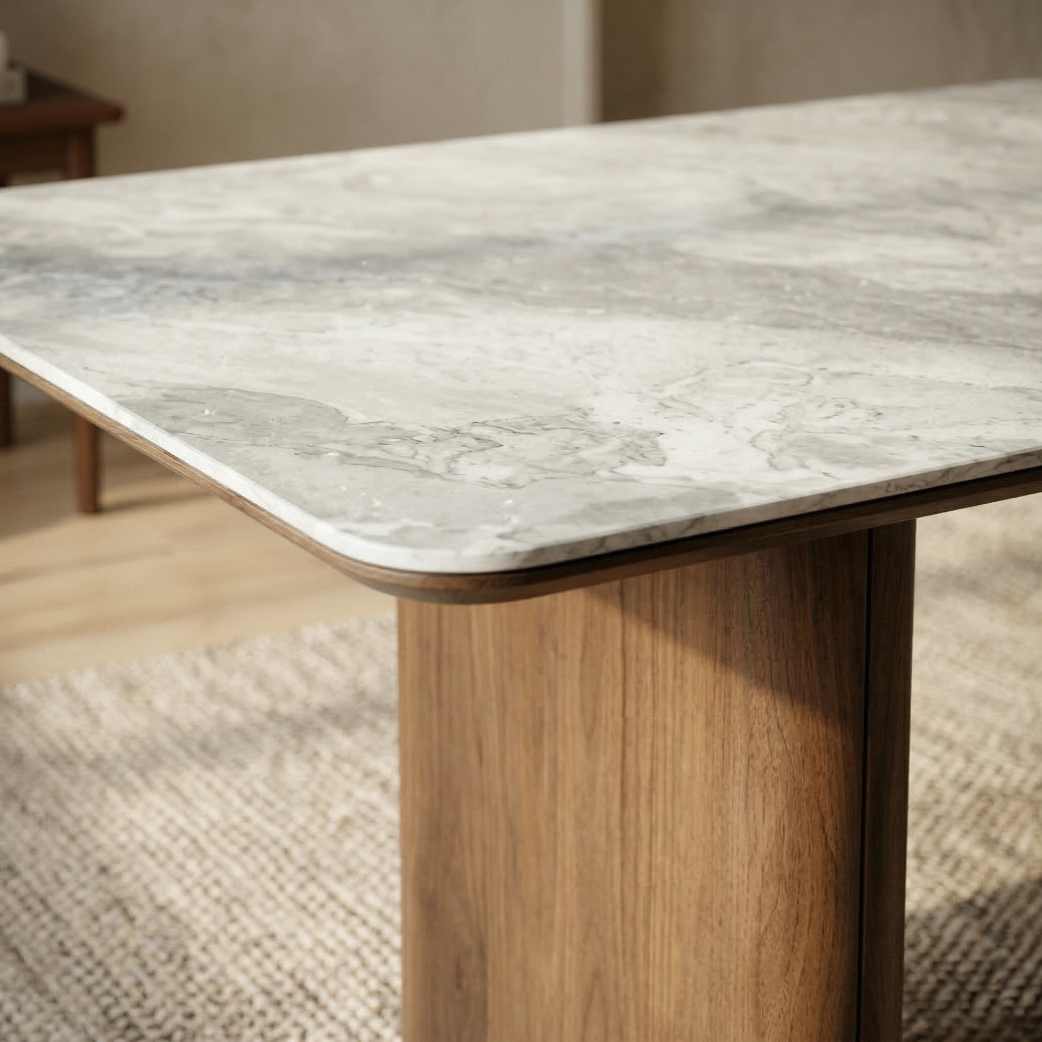 Weekend vibes feel even better when you’re surrounded by loved ones at home, and this Sinoti table—featuring an ultra-strong, heat-resistant sintered stone top that’s highly scratch-proof, stain-resistant, and built to withstand daily use. This table paired with a sturdy walnut veneer base known for its durability, stability, and rich natural warmth—creates the perfect setting for family bonding, meal time, chitchat, and shared laughter, offering a simple, versatile design that blends effortlessly with any interior style and becomes the spot where meaningful family memories are made.