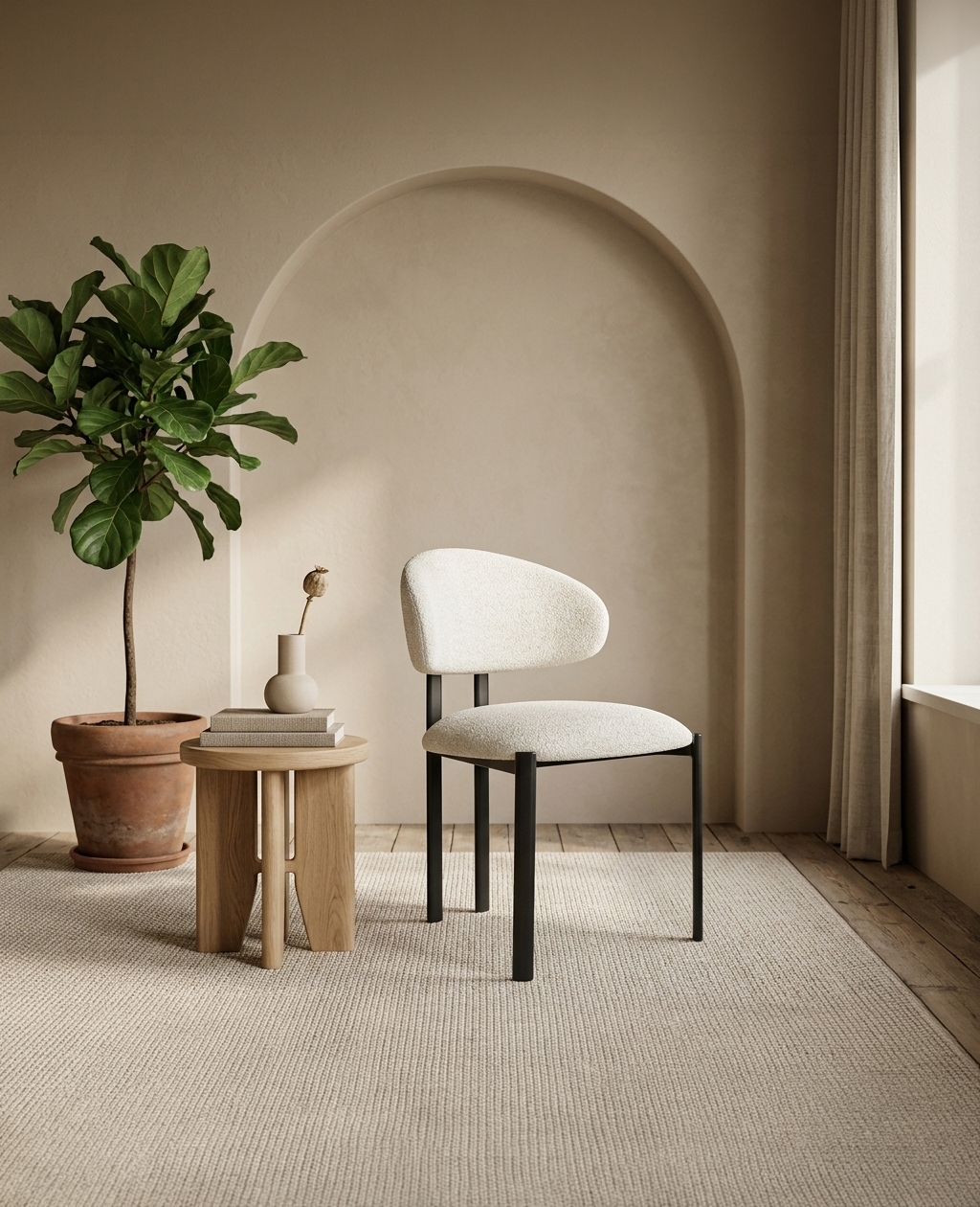 • Crafted with elegant walnut veneer legs, this chair showcases a warm, natural wood aesthetic that brings a touch of sophistication to any space. The rich grain detailing adds visual depth, while the sturdy construction ensures lasting stability and refined style.