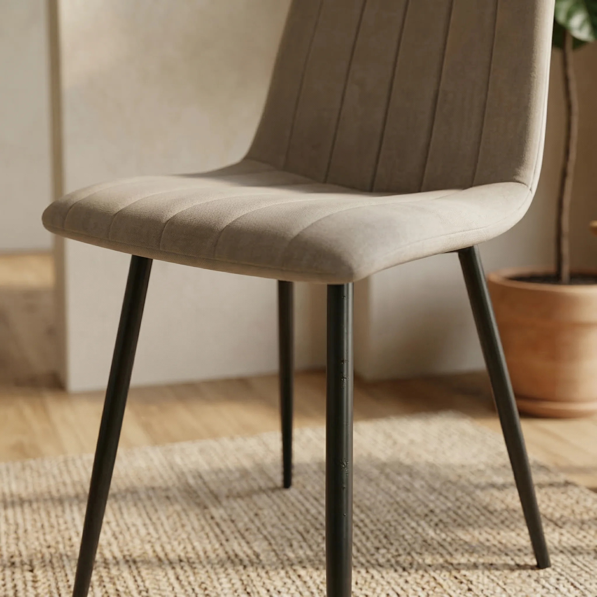 The MOD Chair is a sophisticated designer piece that seamlessly blends timeless warmth with contemporary comfort. Its upholstery is crafted from Fully Imported Fabric, offering a premium feel and superior durability. This comfortable padding is beautifully contrasted and supported by a robust Solid Wood Frame, which provides exceptional stability and a classic, inviting aesthetic. The MOD chair is the perfect choice for elevating your dining space with a piece that is as stylish and refined as it is durable and comfortable.